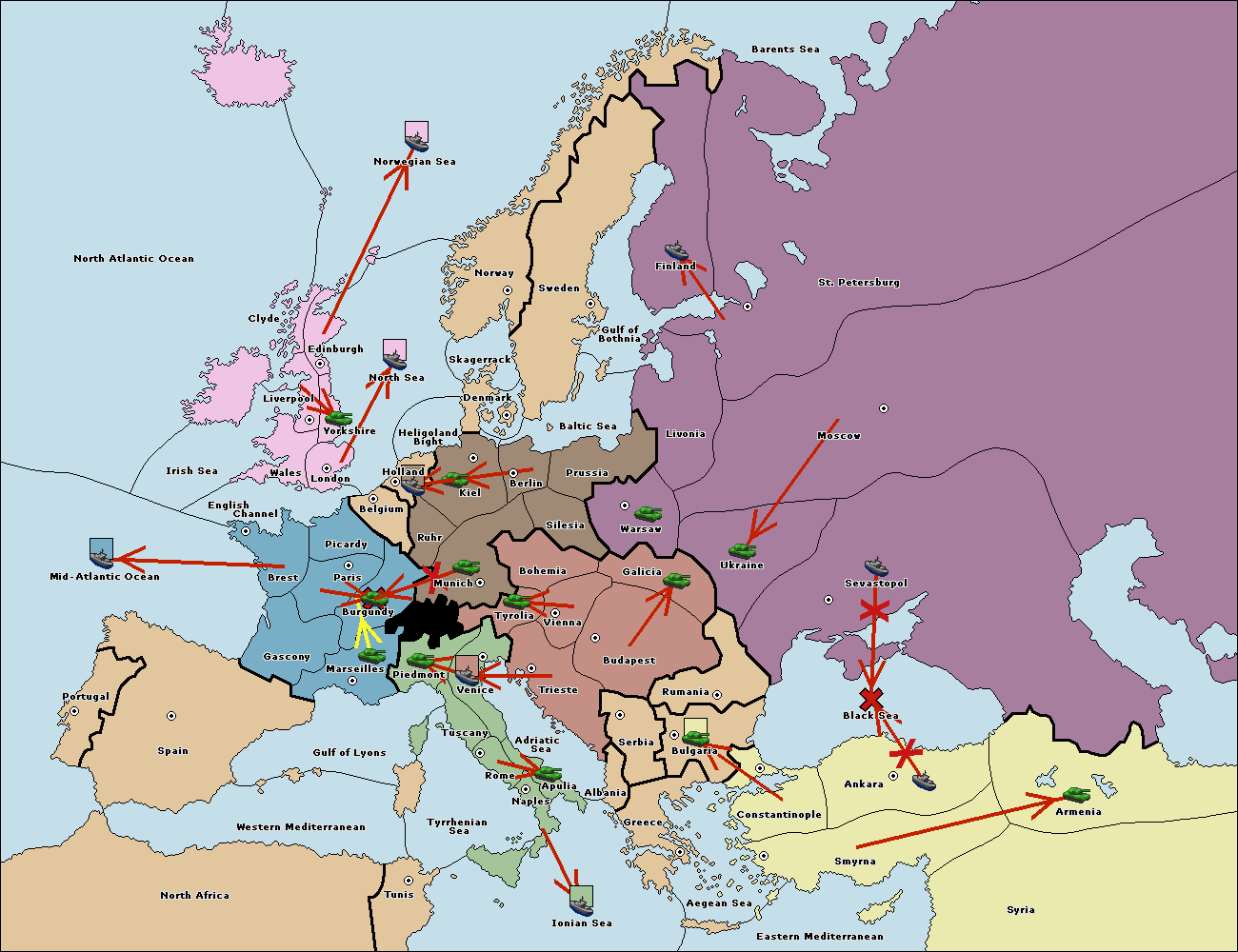 The fleet at Constantinople support move to Black Sea from Ankara.