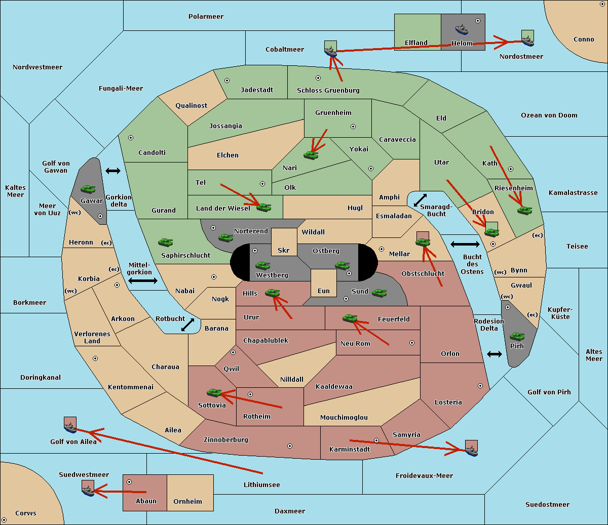 The fleet at Verlorenes Land move to Korbia (West Coast).