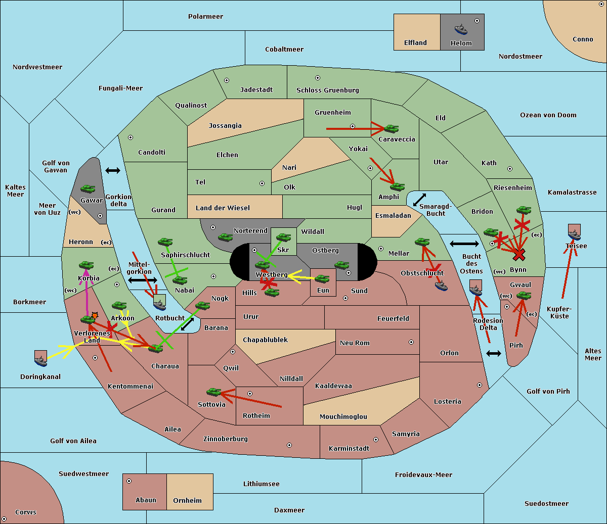 The army at Arkoon support move to Verlorenes Land from Korbia.