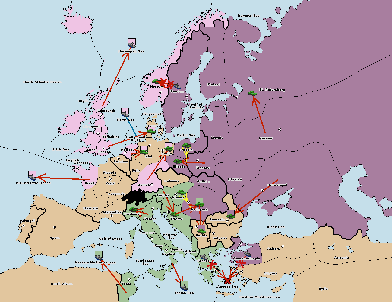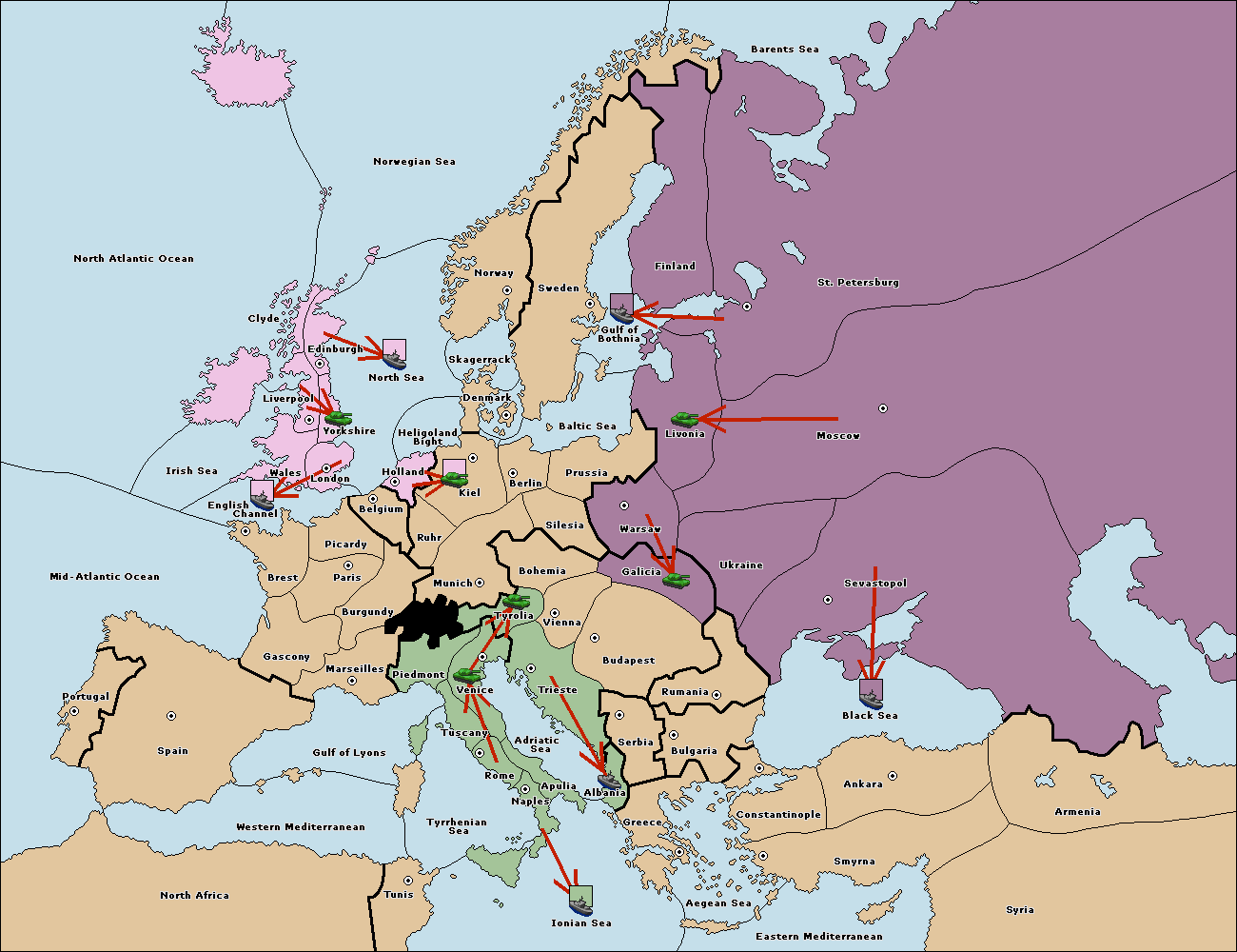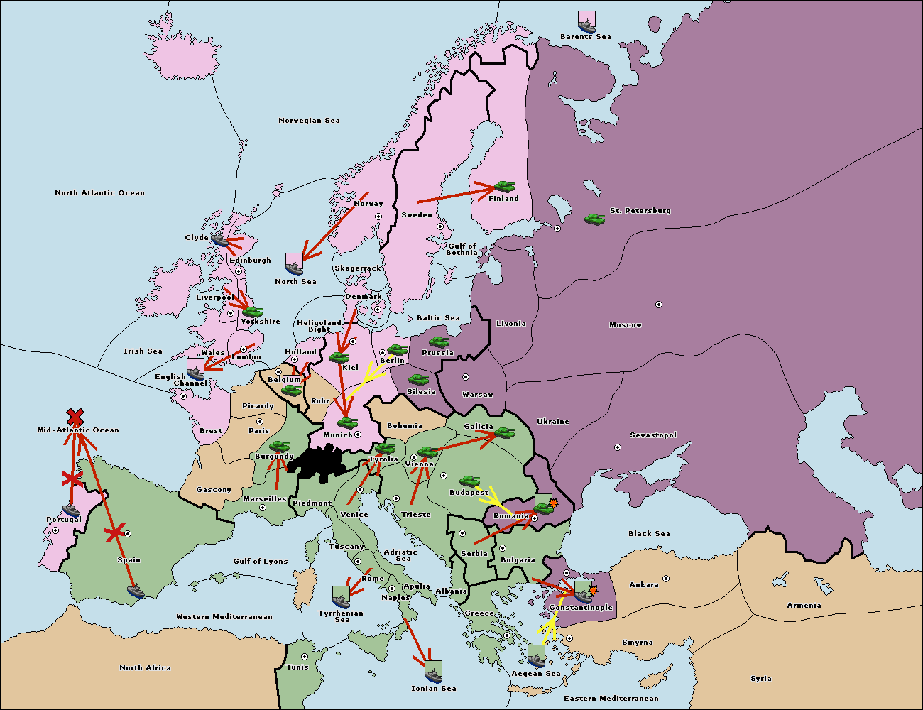The fleet at Bulgaria (South Coast) move to Constantinople.