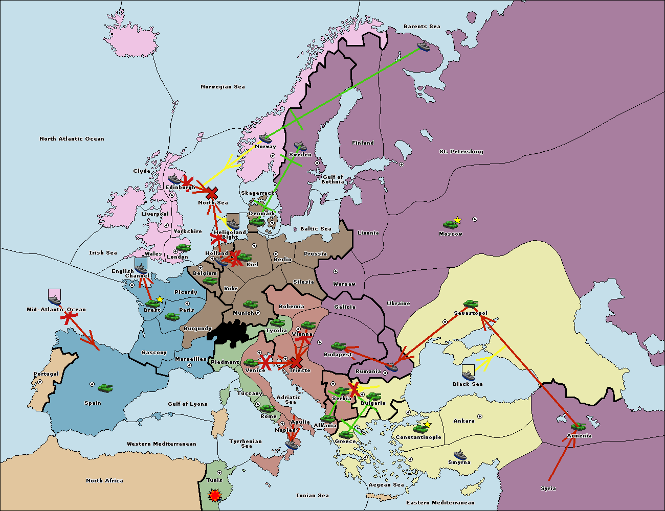 The fleet at Rumania support move to Sevastopol from Moscow.