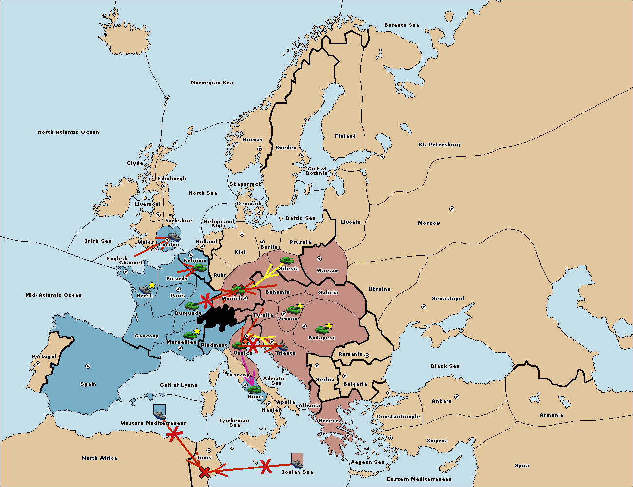 The fleet at Ionian Sea support move to Tunis from Tyrrhenian Sea.