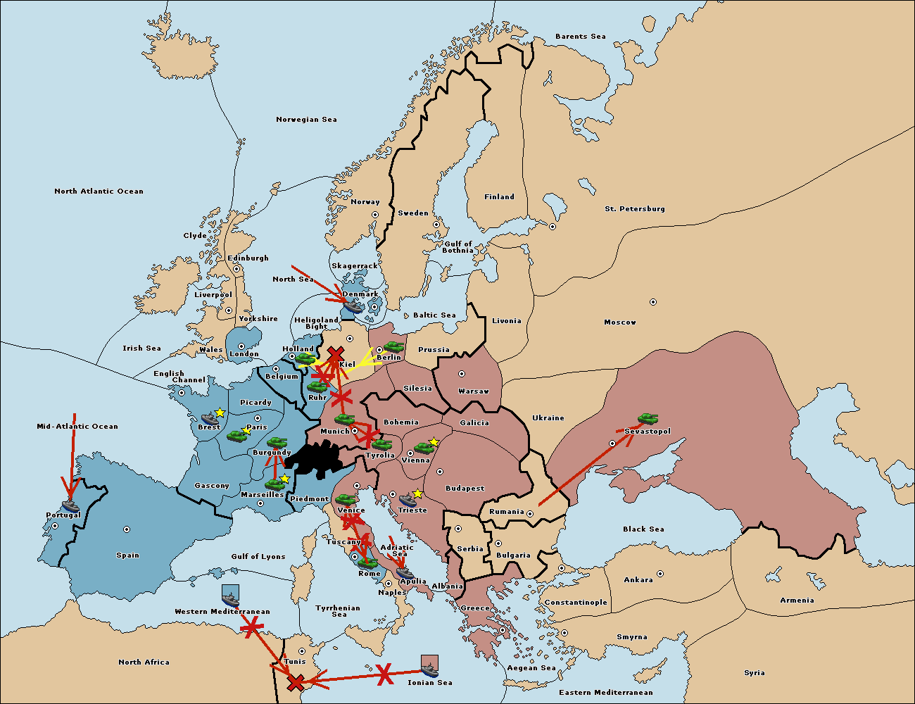 The fleet at Spain (South Coast) move to Western Mediterranean.