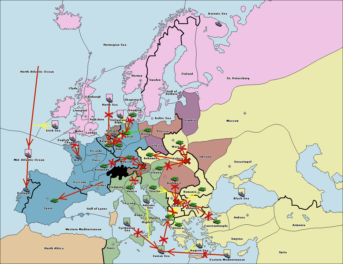 The fleet at Aegean Sea support move to Greece from Bulgaria.