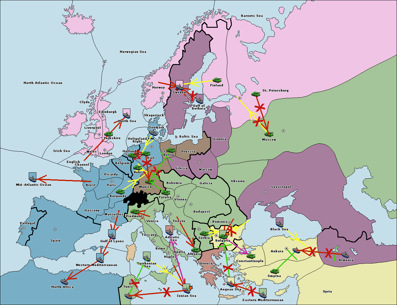 The fleet at Ionian Sea support move to Tyrrhenian Sea from Tuscany.