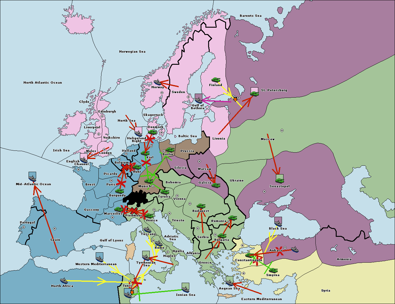 The fleet at Rumania support move to Black Sea from Sevastopol.