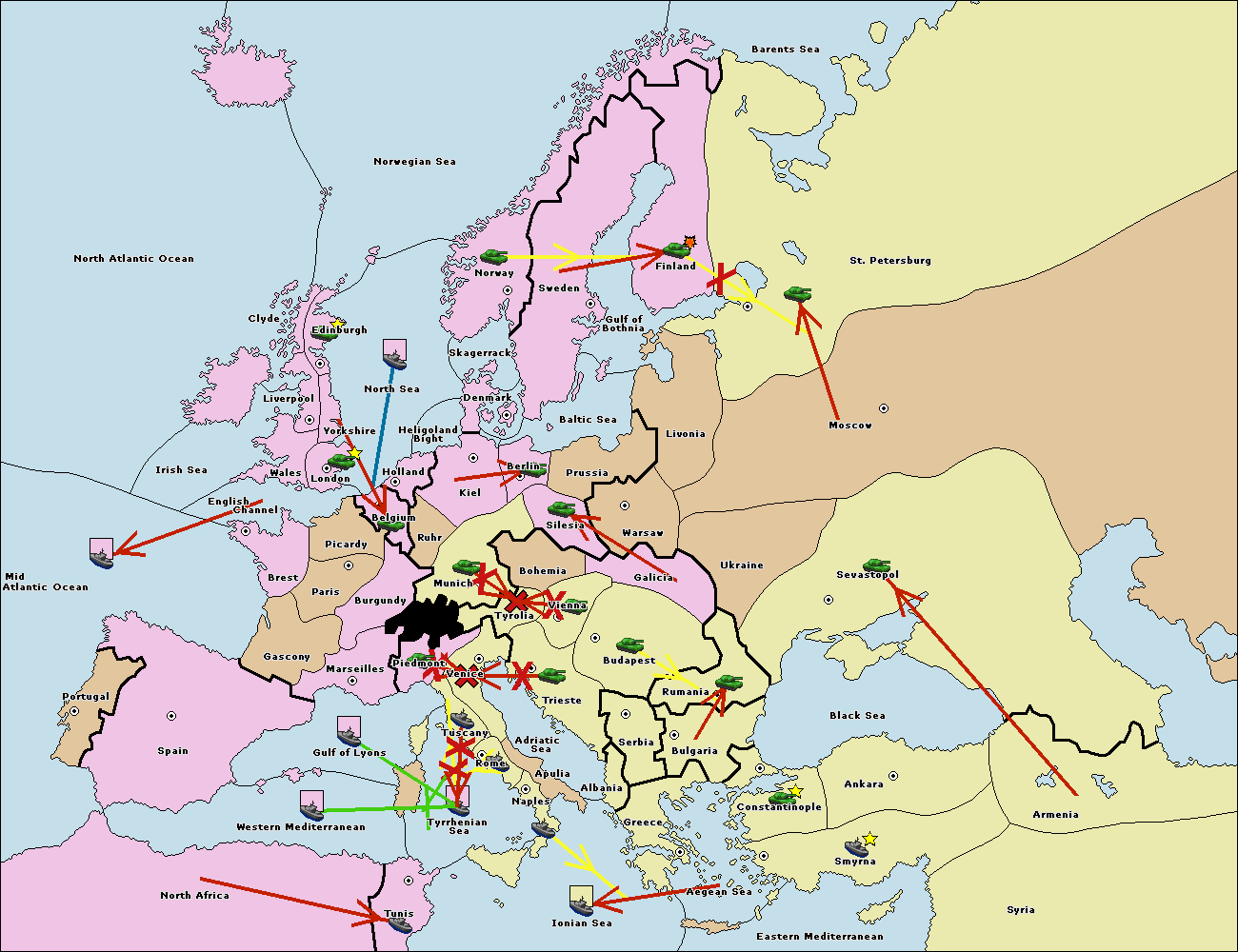 The fleet at Ionian Sea support move to Tyrrhenian Sea from Tuscany.