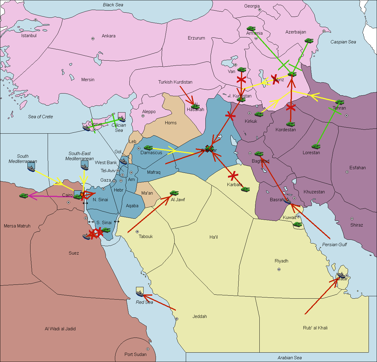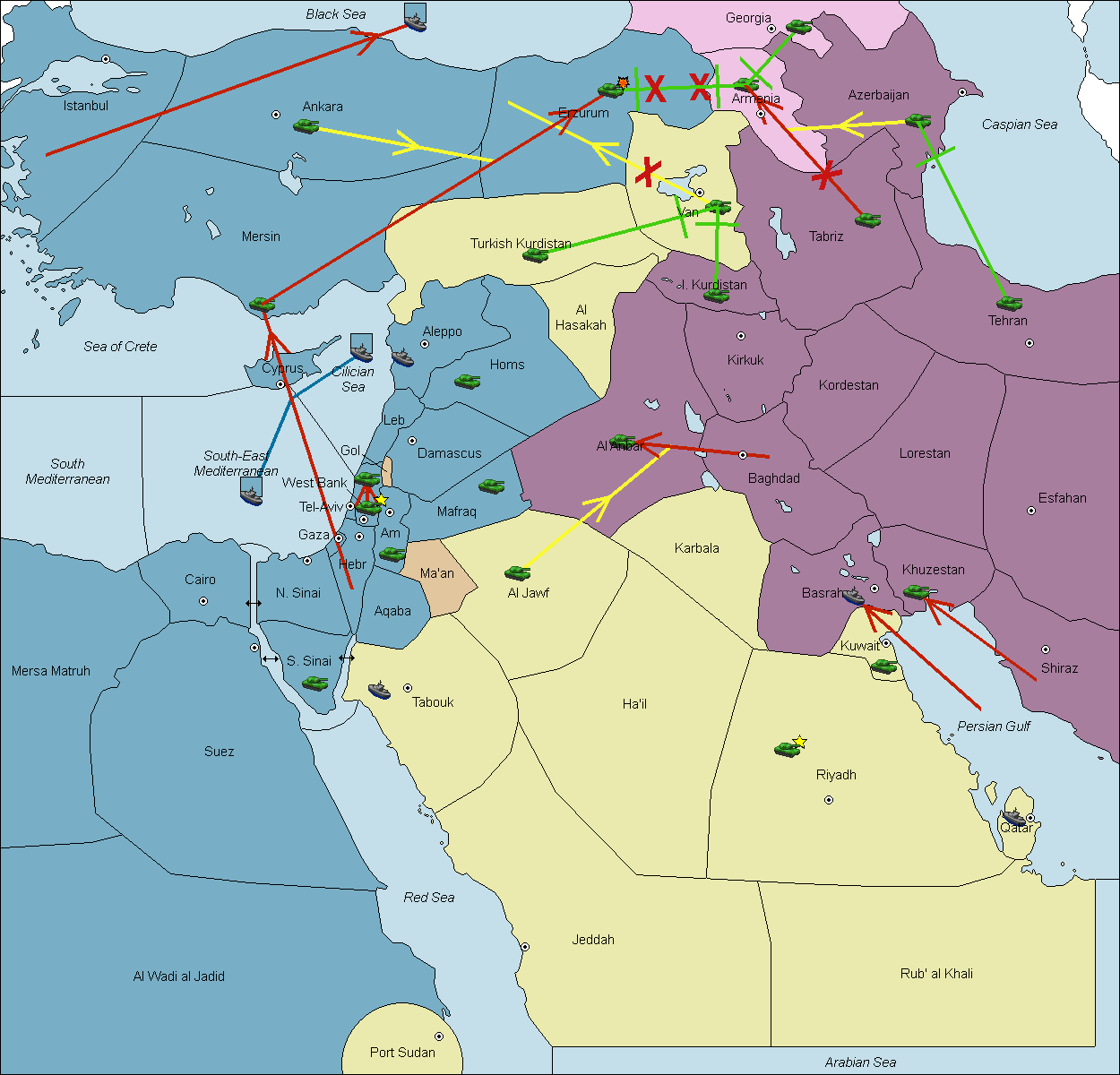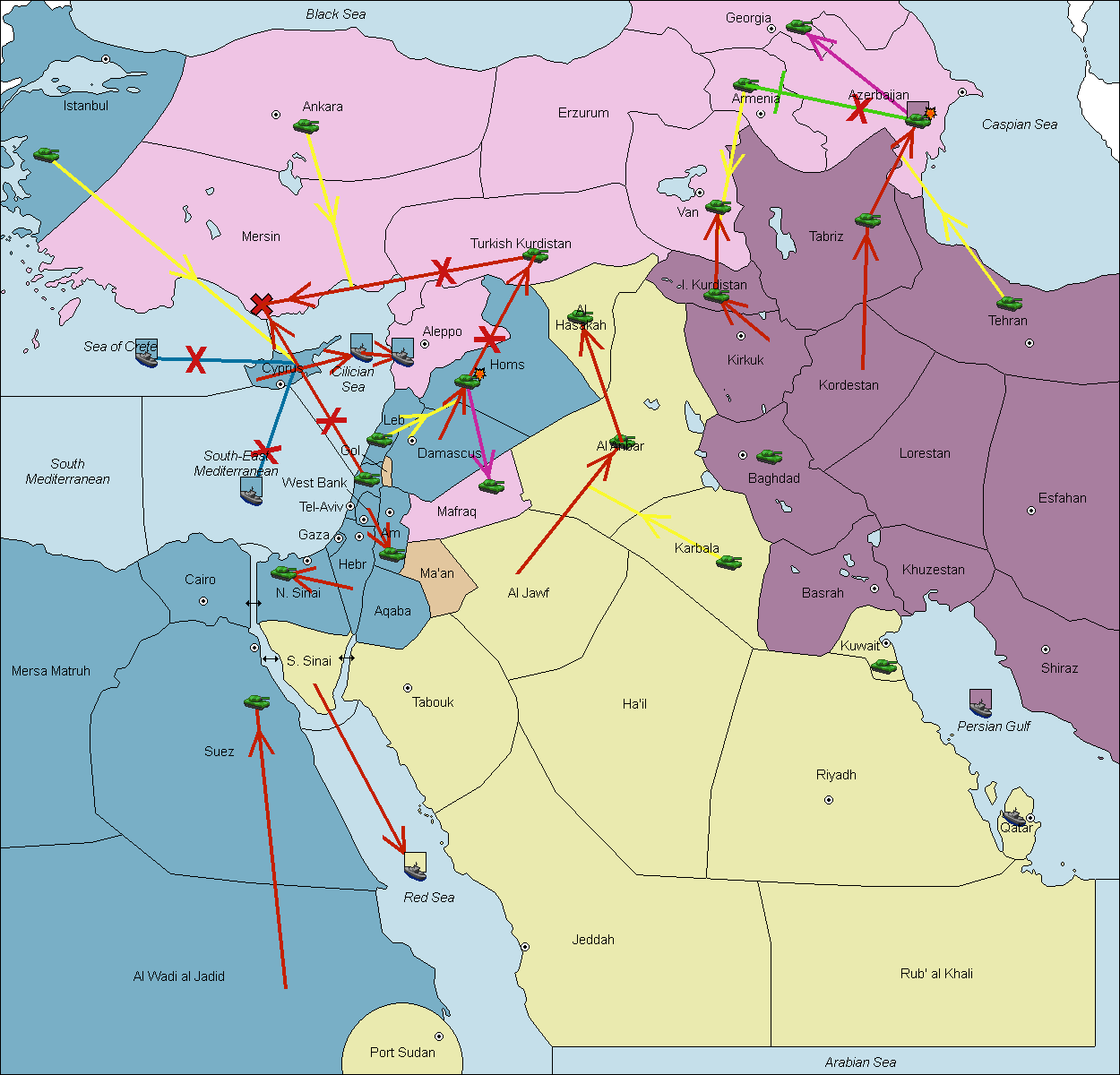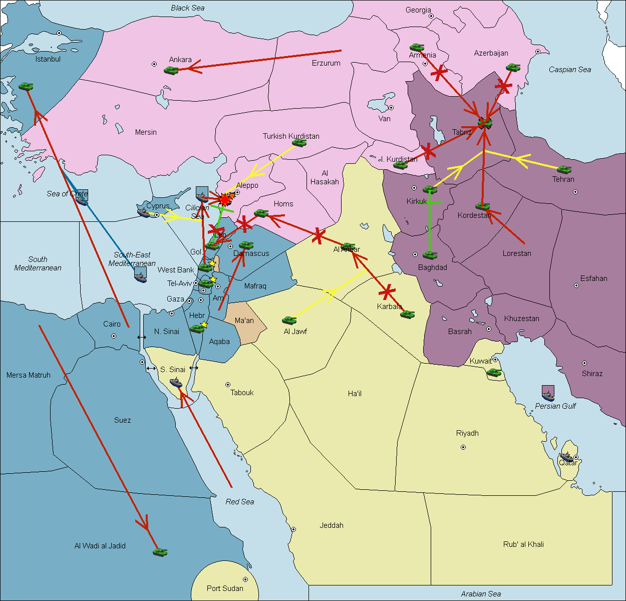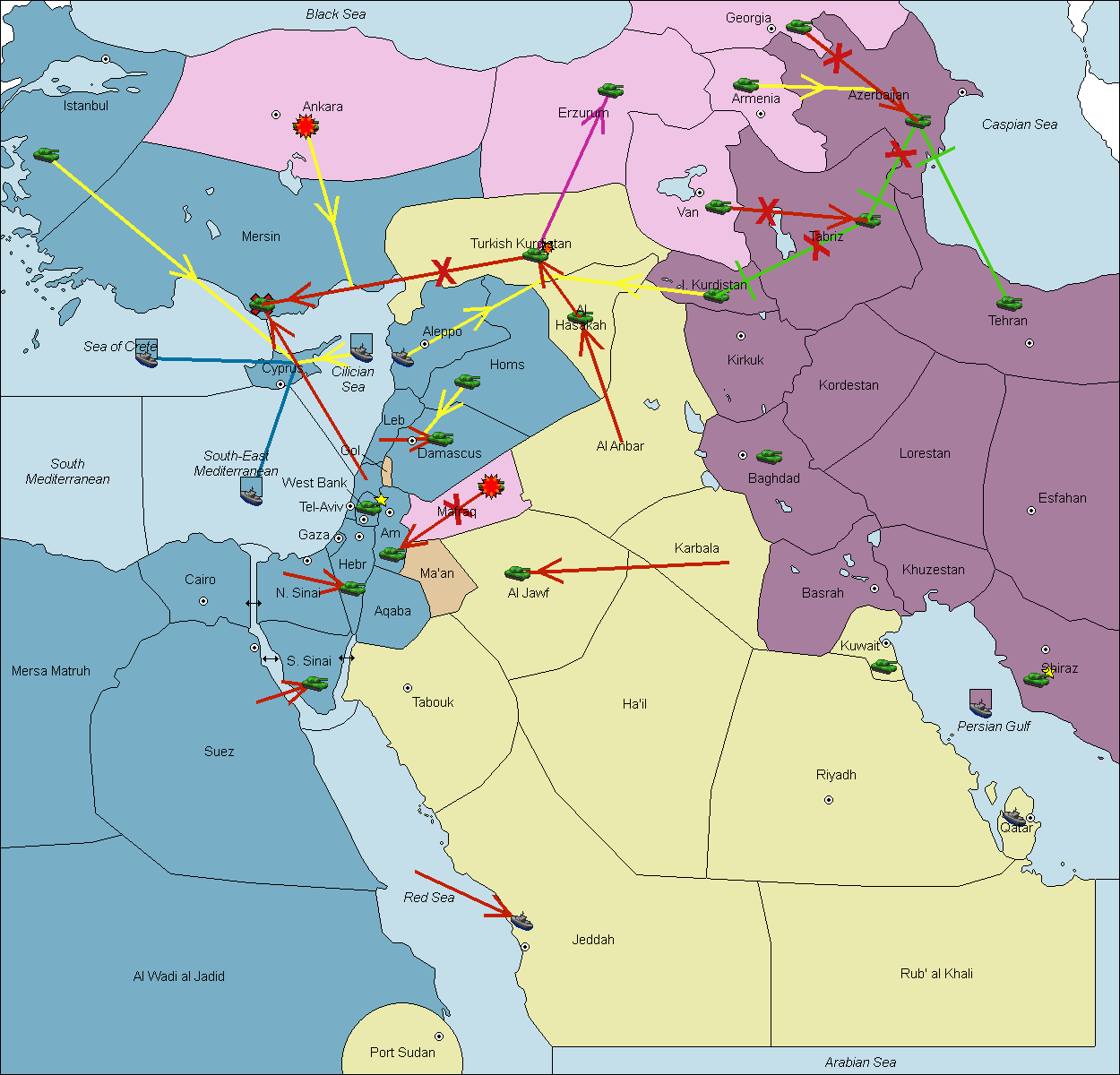 The fleet at South-East Mediterranean move to South Mediterranean.