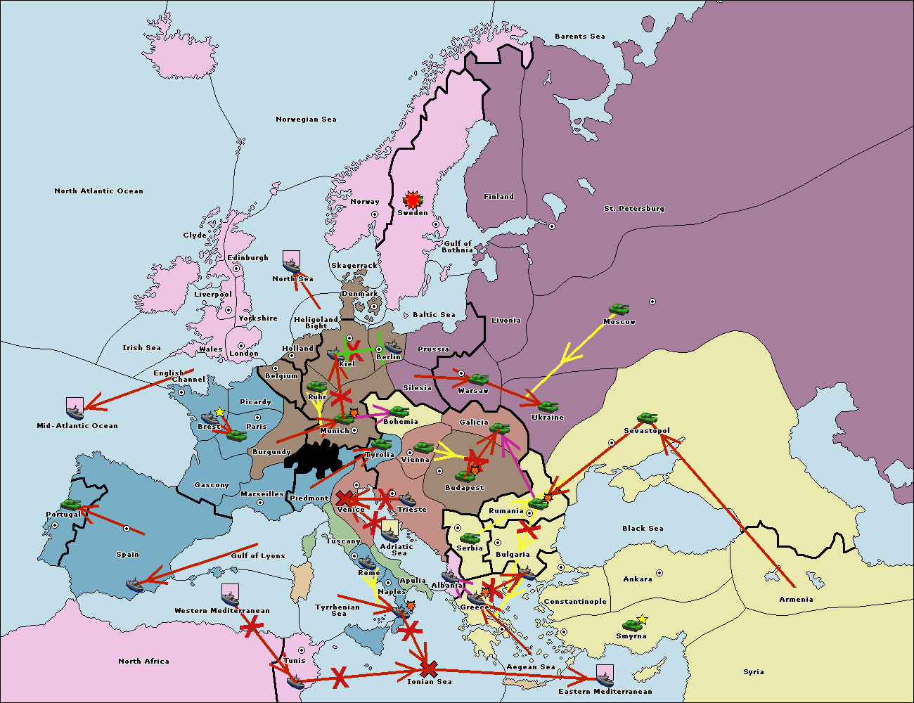 The army at Tyrolia move to Trieste.