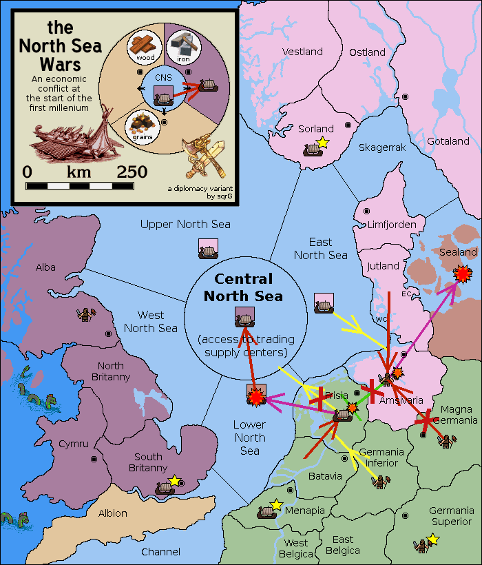 The fleet at Frisia support move to Amsivaria from Magna Germania.