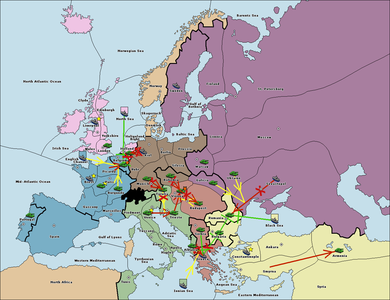 The army at Sevastopol support move to Rumania from Bulgaria.