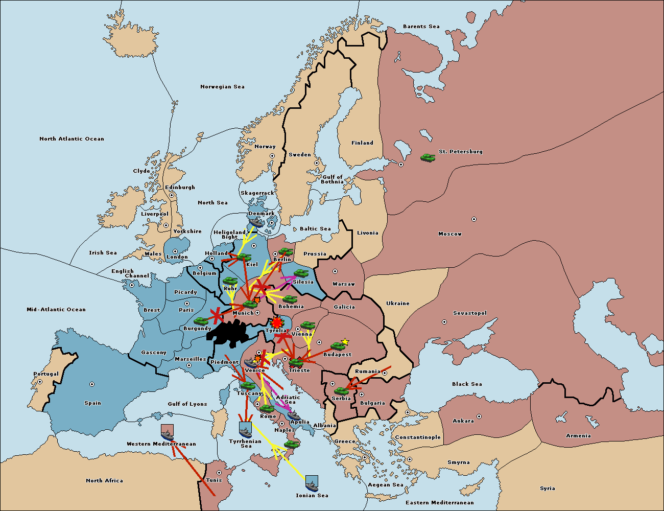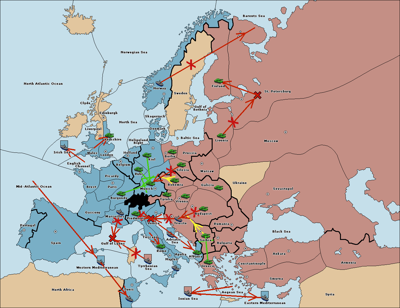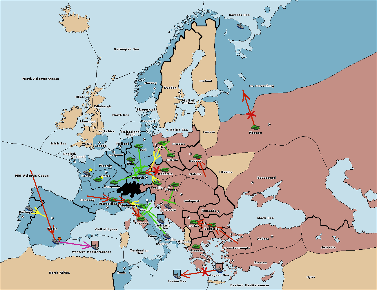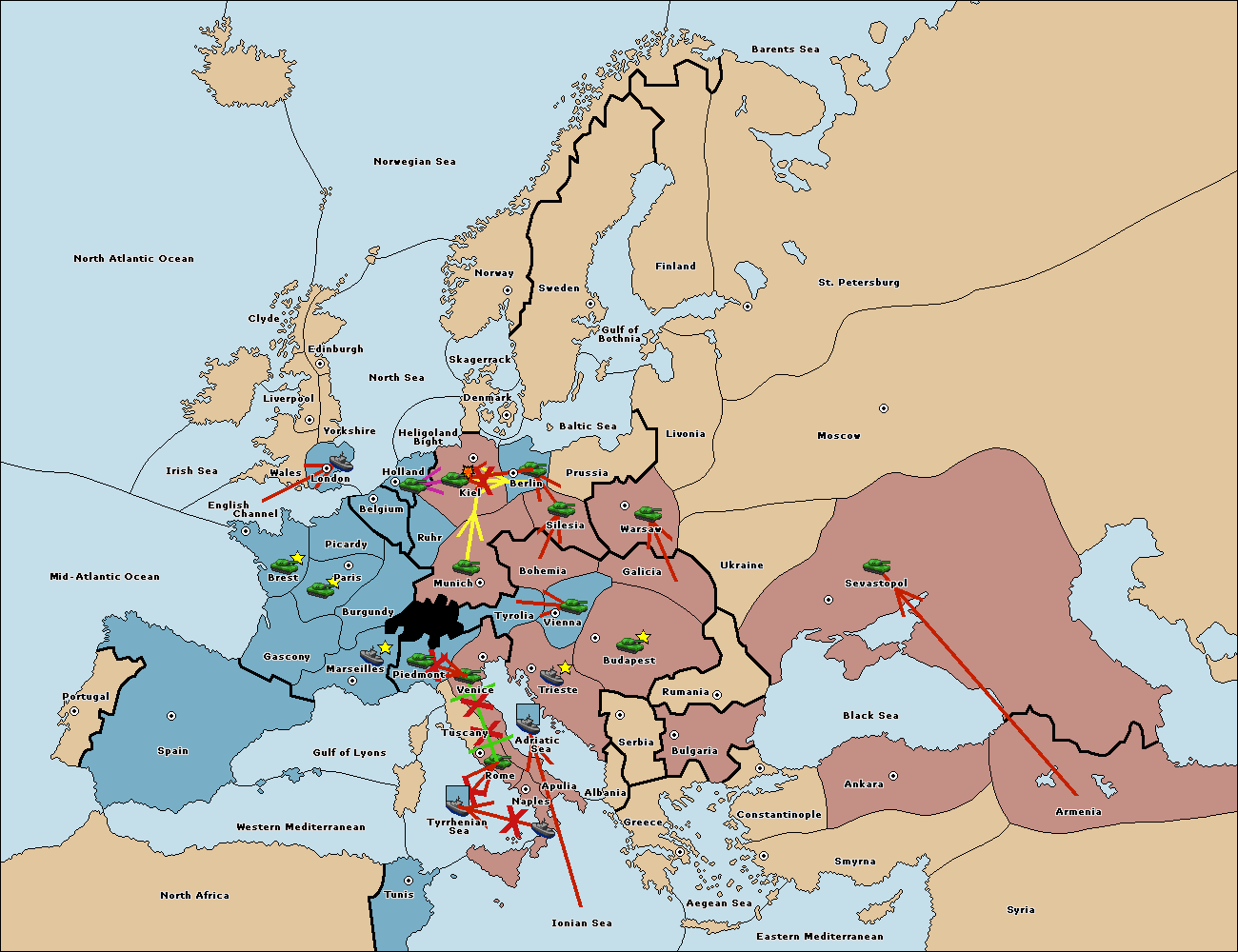 The fleet at Ionian Sea support move to Tyrrhenian Sea from Tuscany.