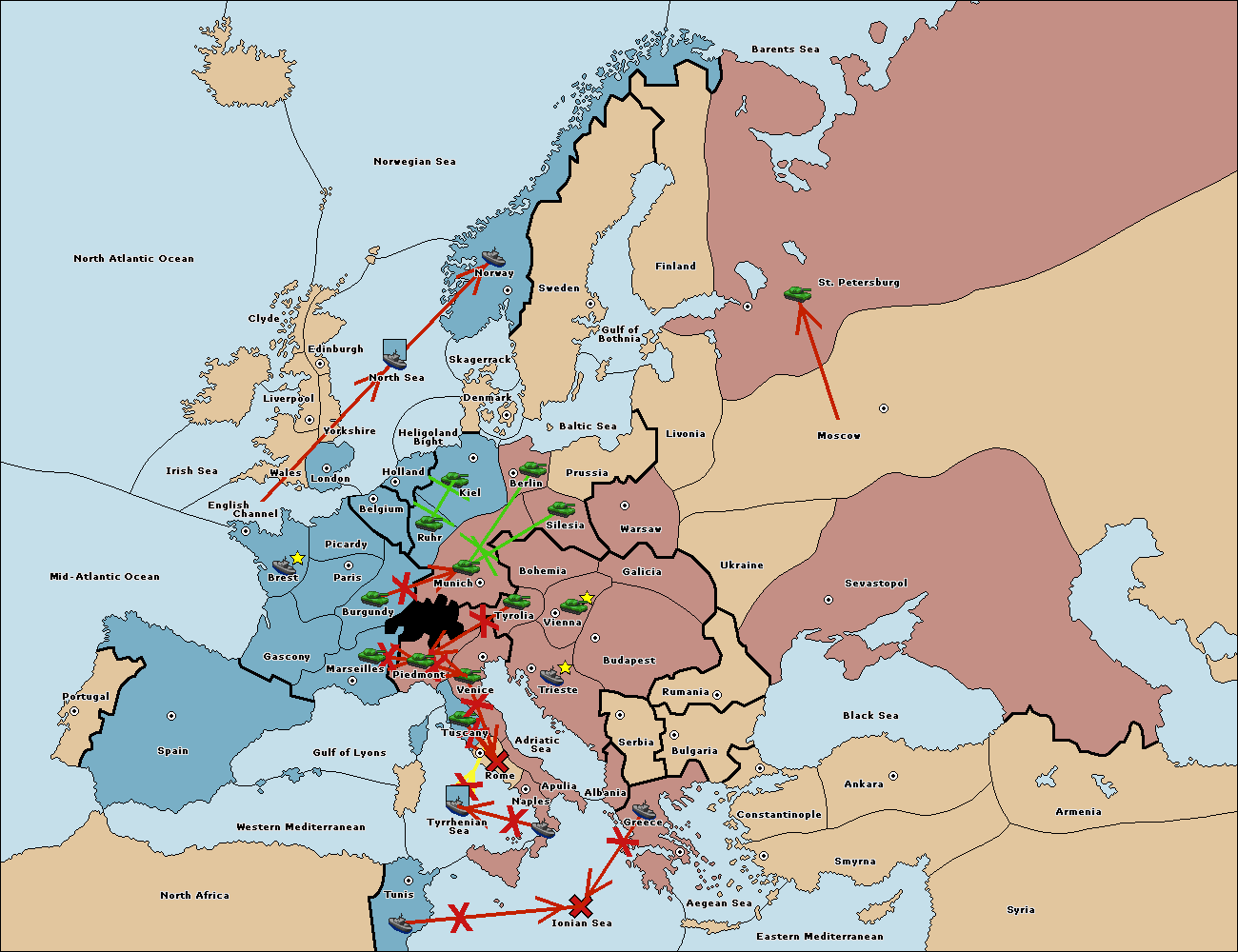 The fleet at Tunis support move to Tyrrhenian Sea from Rome.