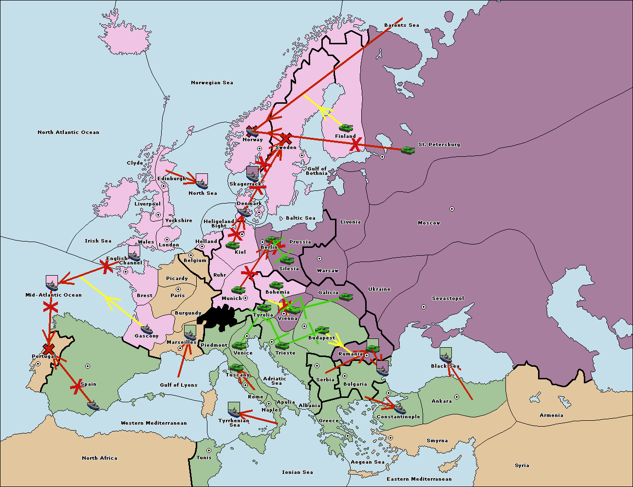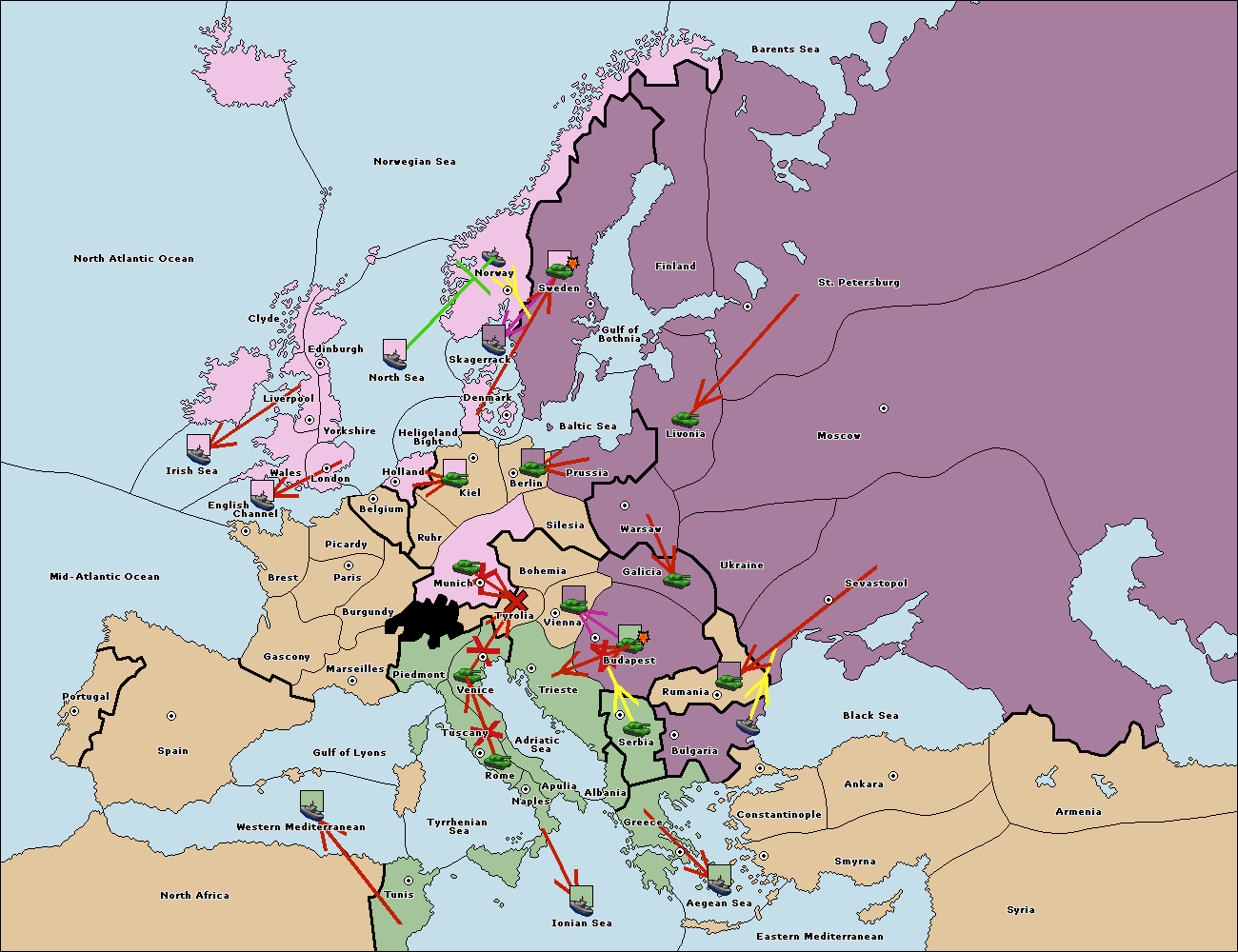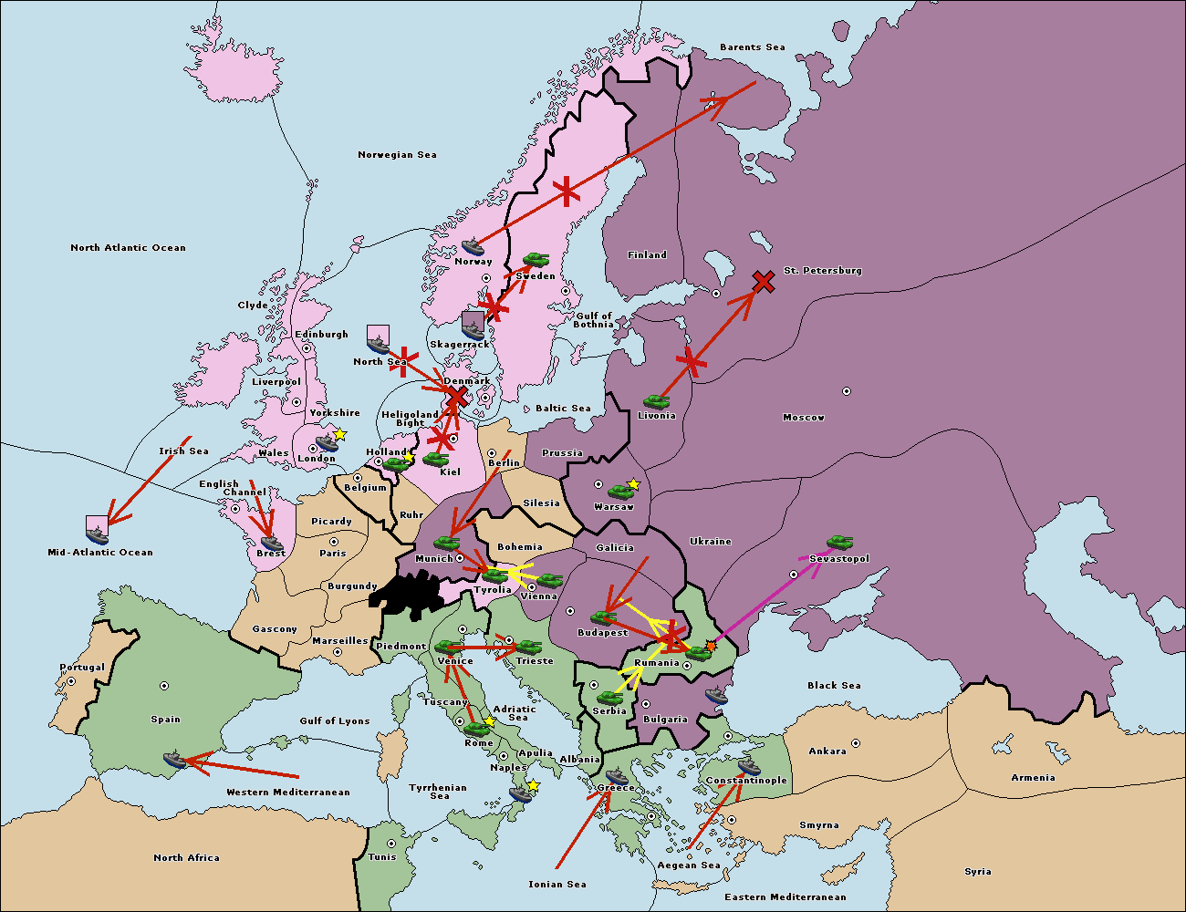 The fleet at Bulgaria (North Coast) support move to Rumania from Sevastopol.