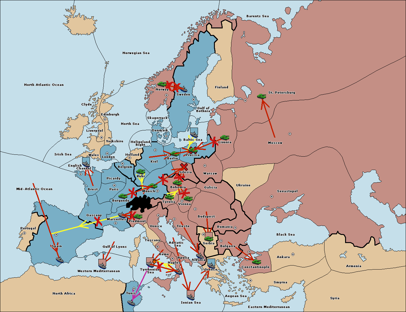The fleet at Spain (South Coast) move to Western Mediterranean.