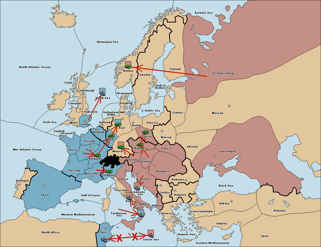 The fleet at Naples support move to Ionian Sea from Tunis.