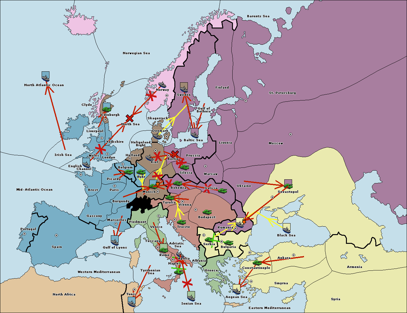 The fleet at Berlin move to Baltic Sea.
