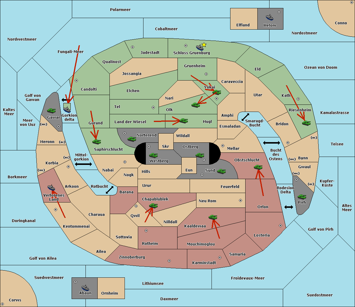 The fleet at Schloss Gruenburg move to Ozean von Doom.