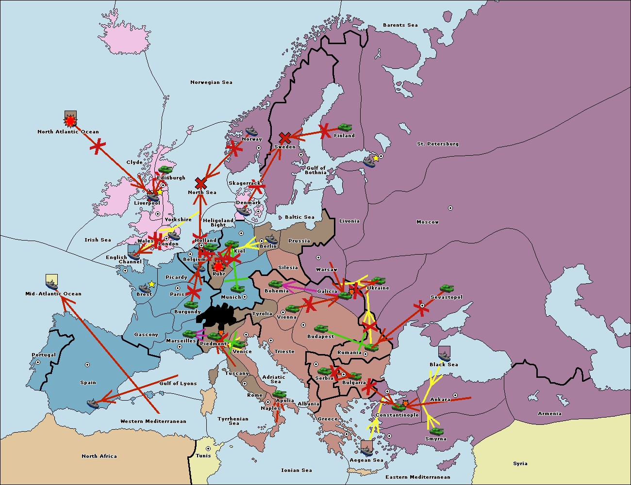 The fleet at Tyrrhenian Sea move to Gulf of Lyons.