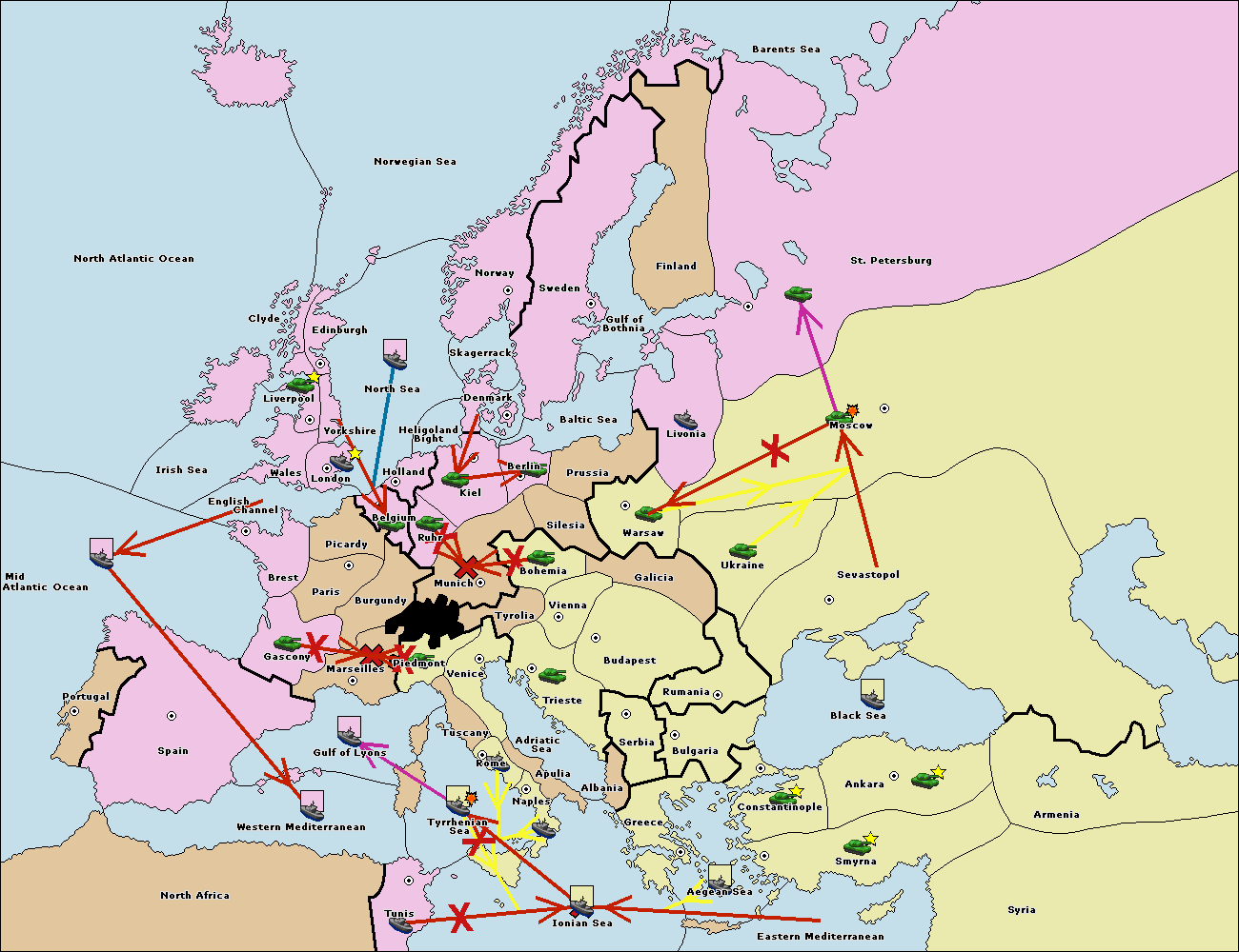 The fleet at Mid-Atlantic Ocean move to Western Mediterranean.