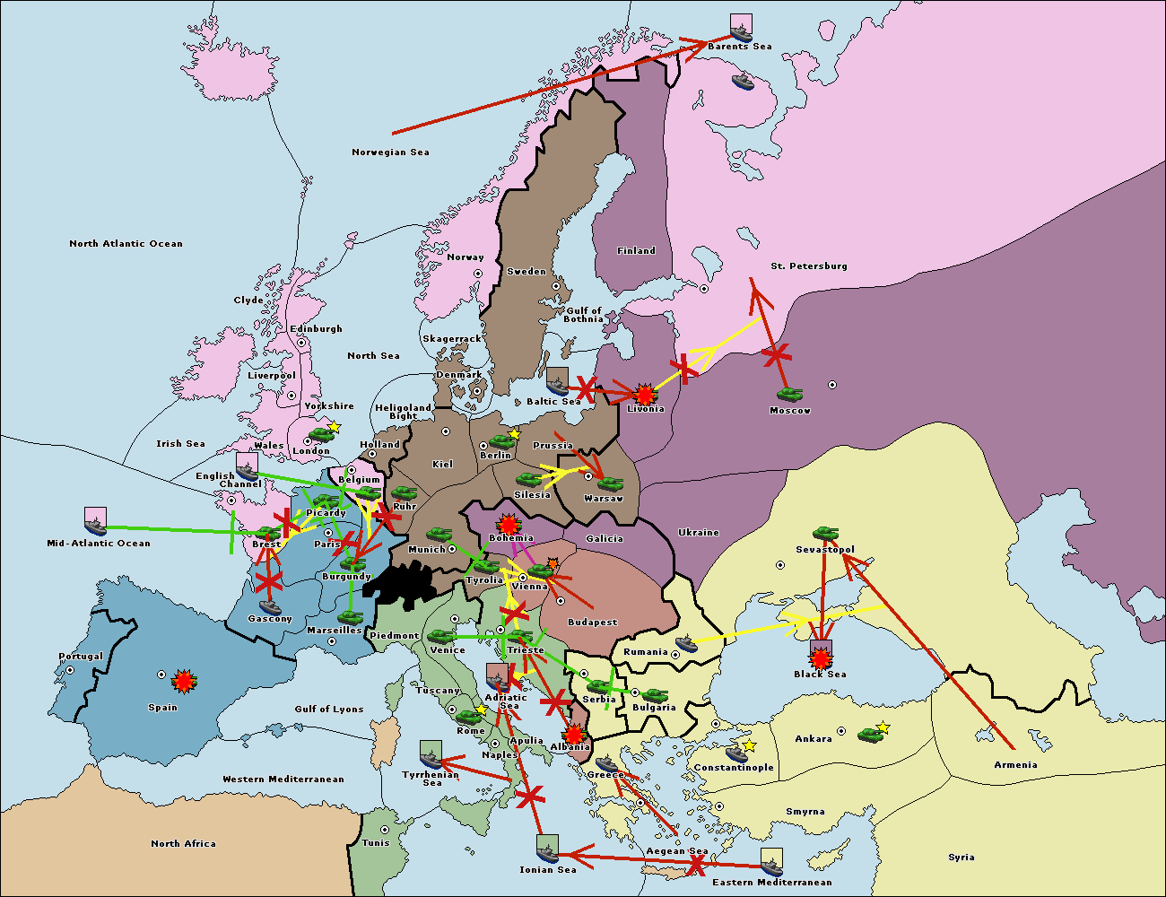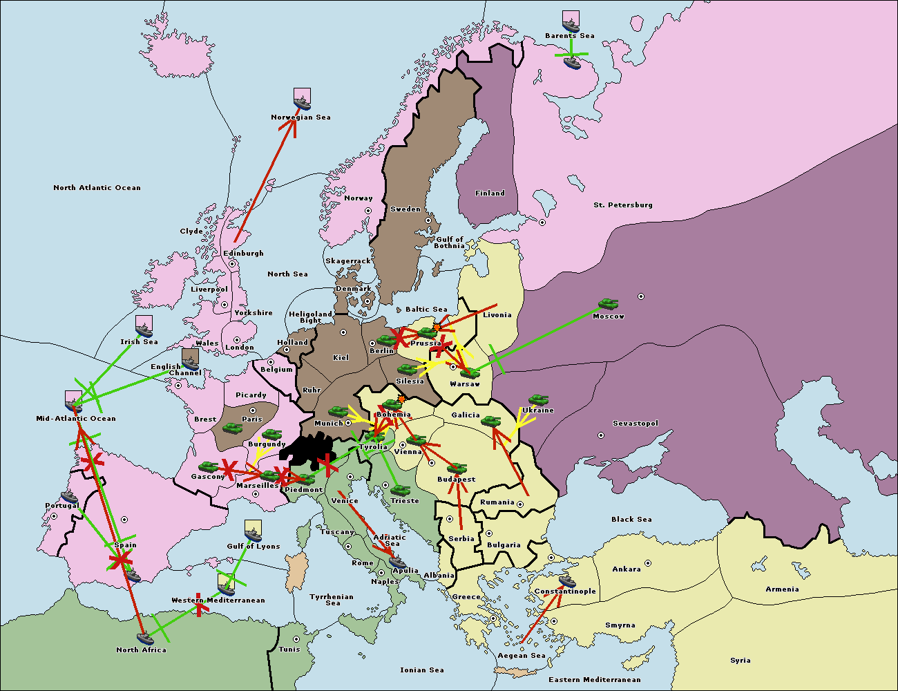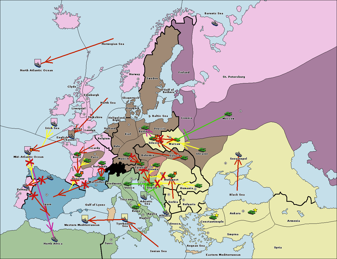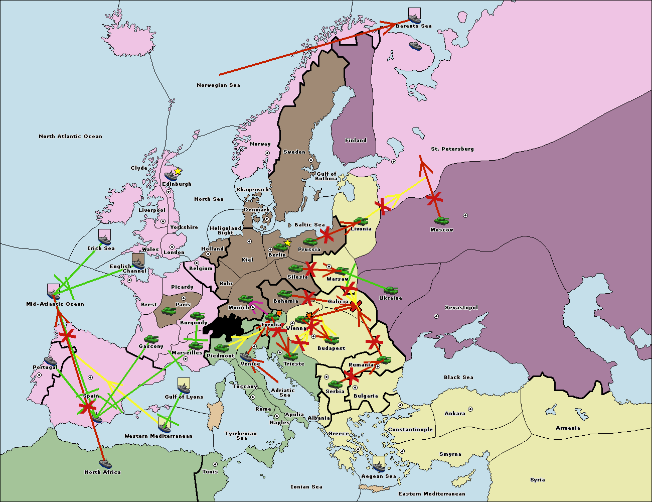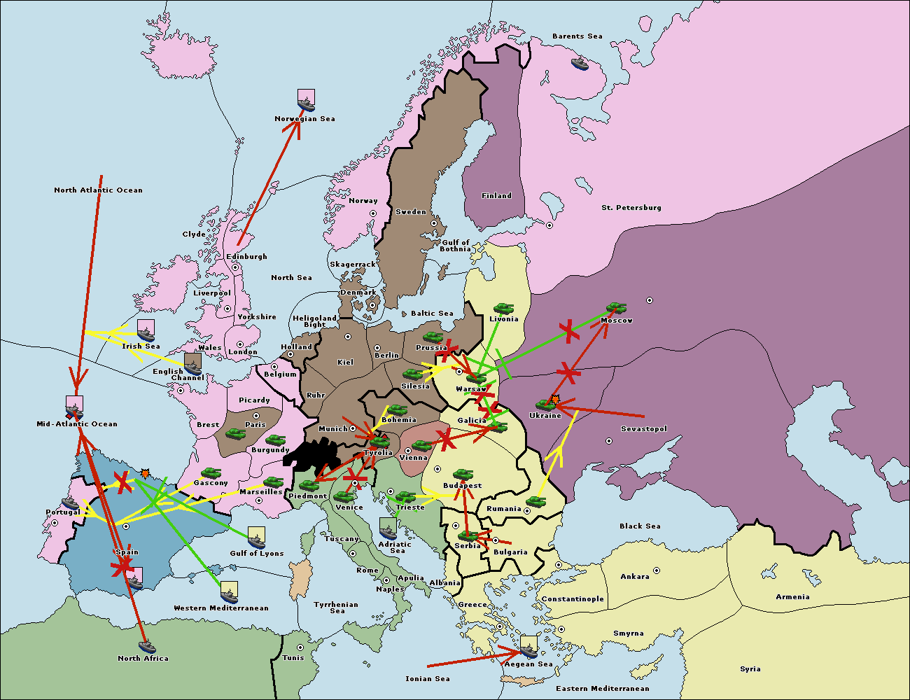 The fleet at North Africa move to Mid-Atlantic Ocean.
