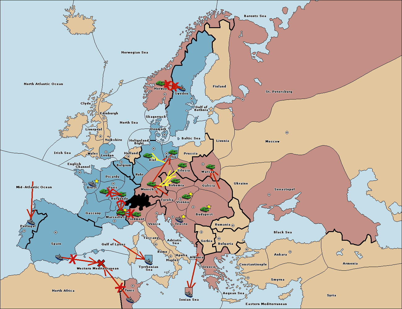 The fleet at Mid-Atlantic Ocean move to Western Mediterranean.