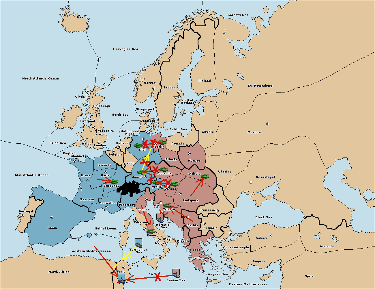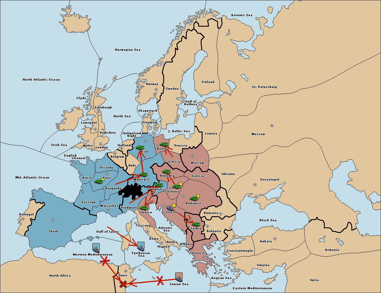 The fleet at Tyrrhenian Sea support move to Ionian Sea from Tunis.