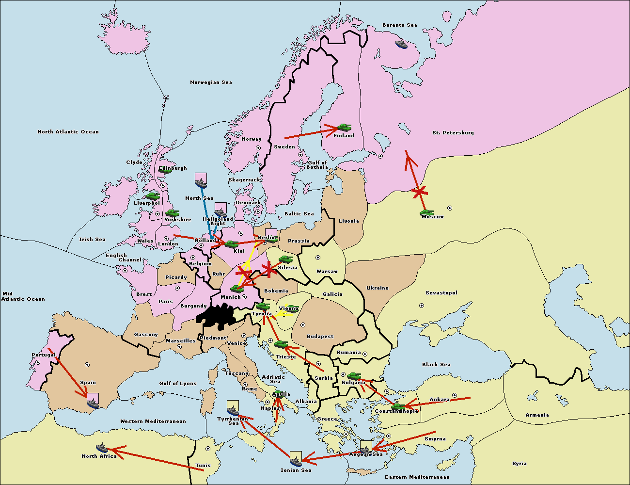 The fleet at Bulgaria (South Coast) move to Aegean Sea.