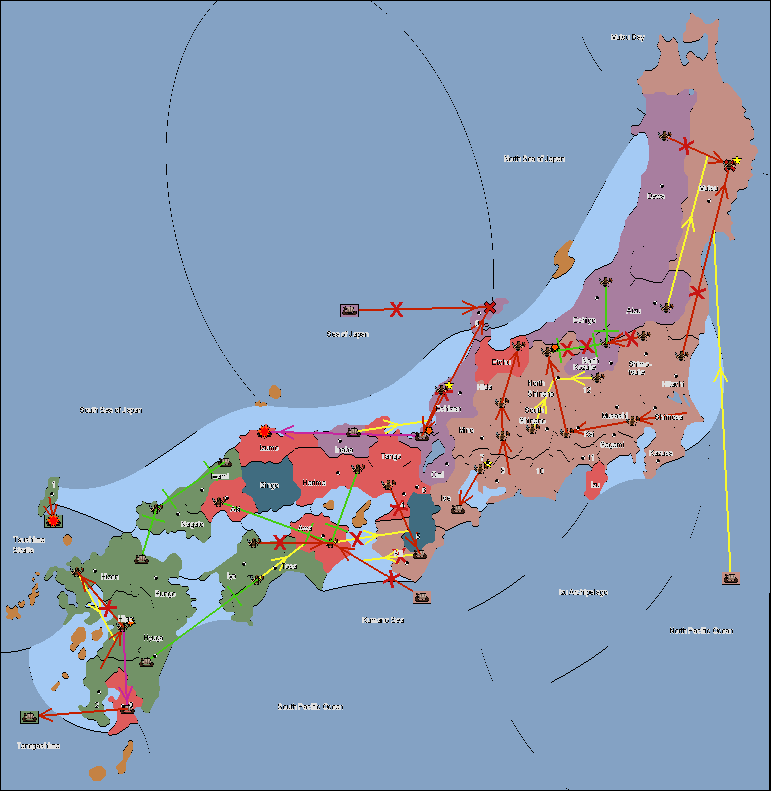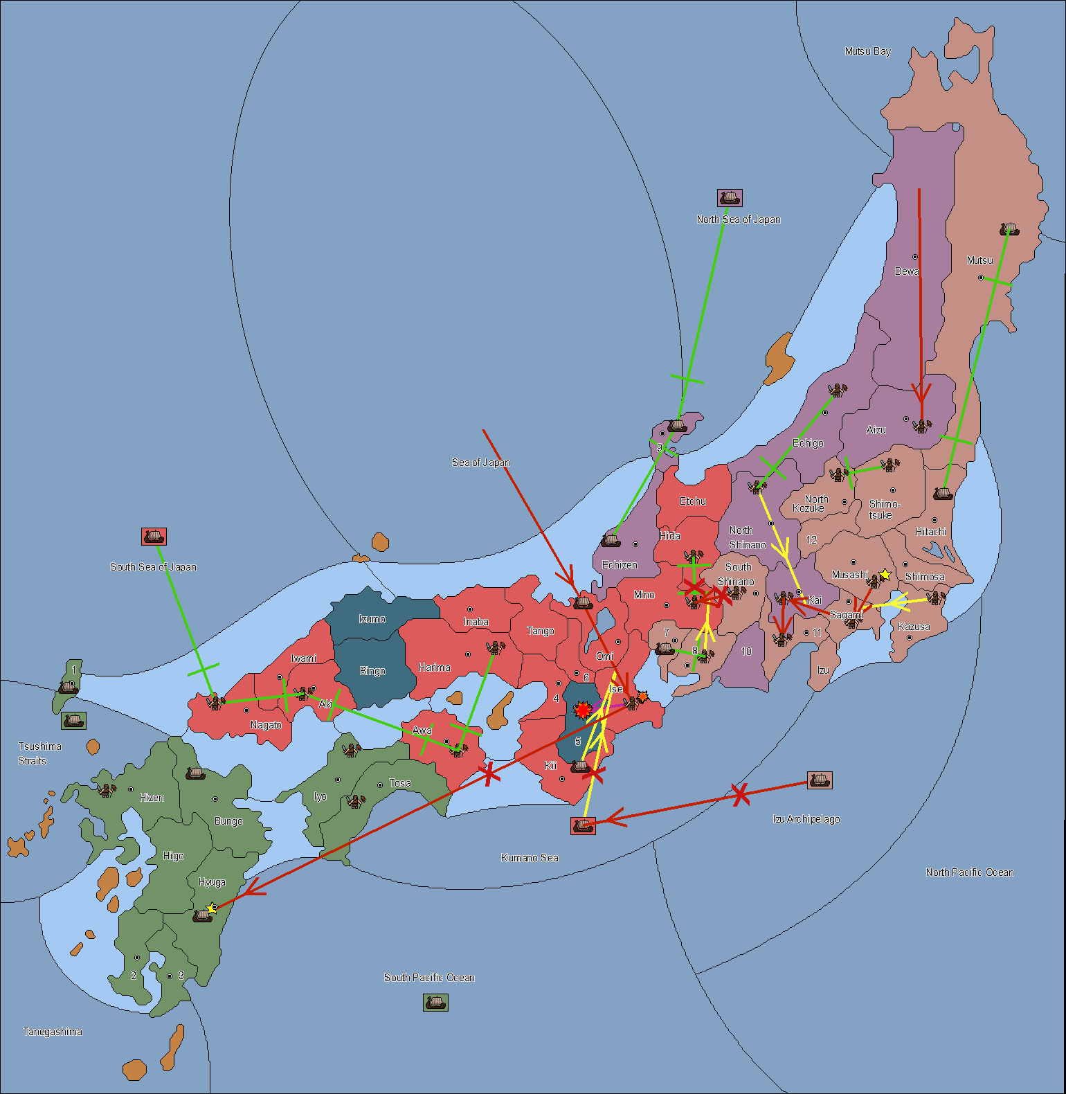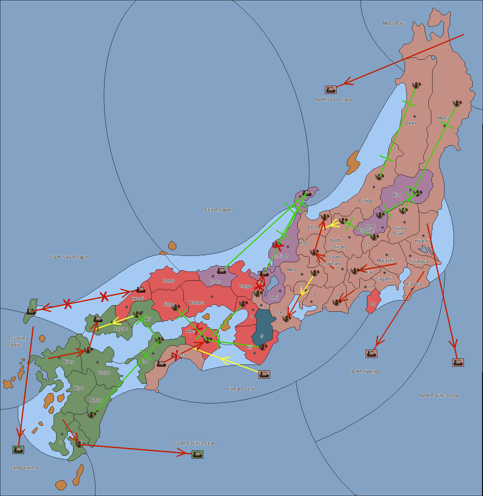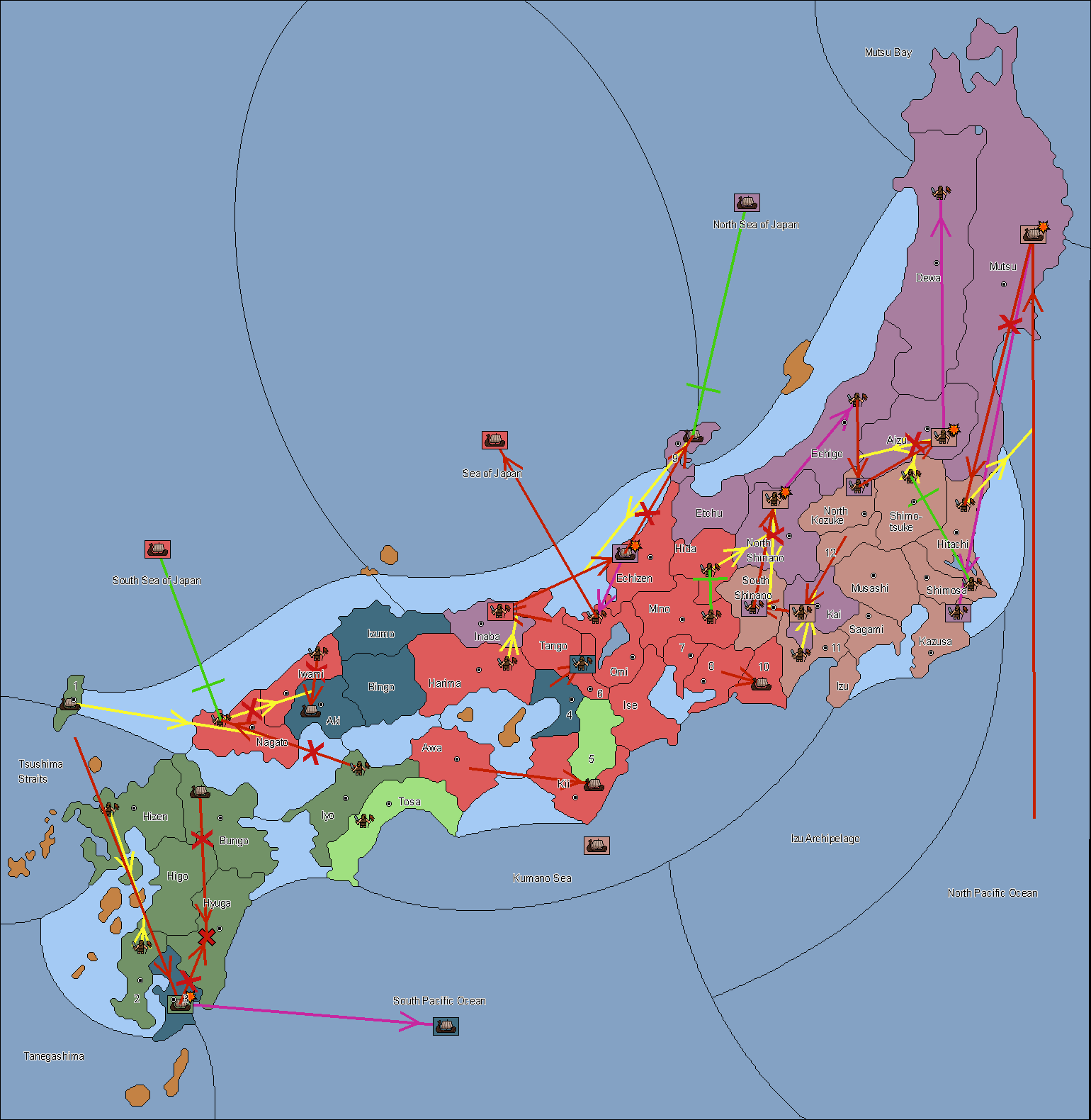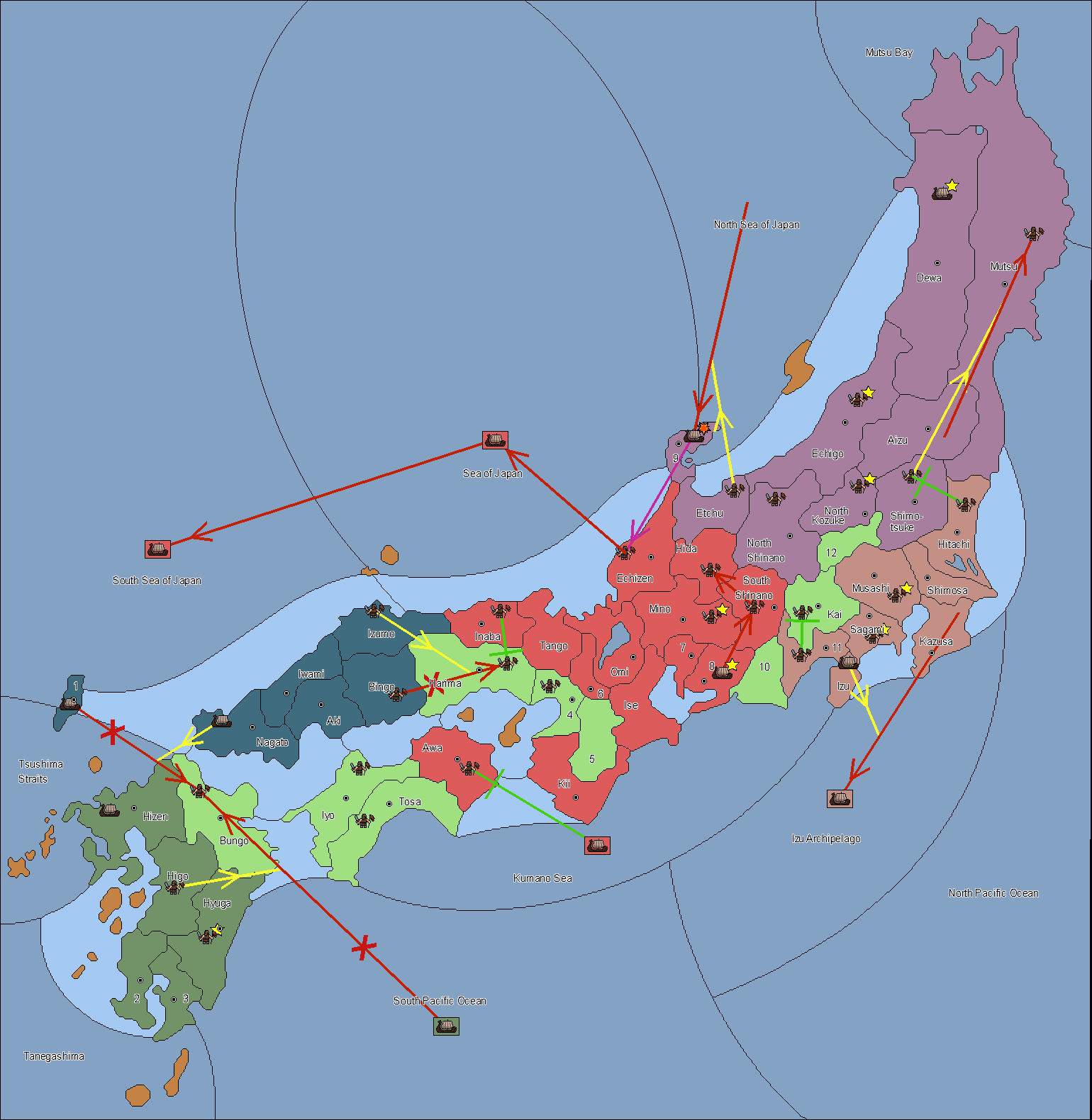 The fleet at Noto (9) support move to Inaba from Echizen.