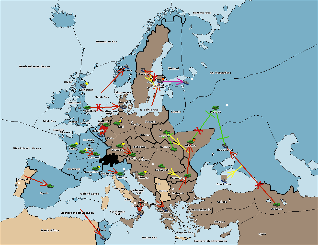 The fleet at Gulf of Bothnia move to St. Petersburg (South Coast).