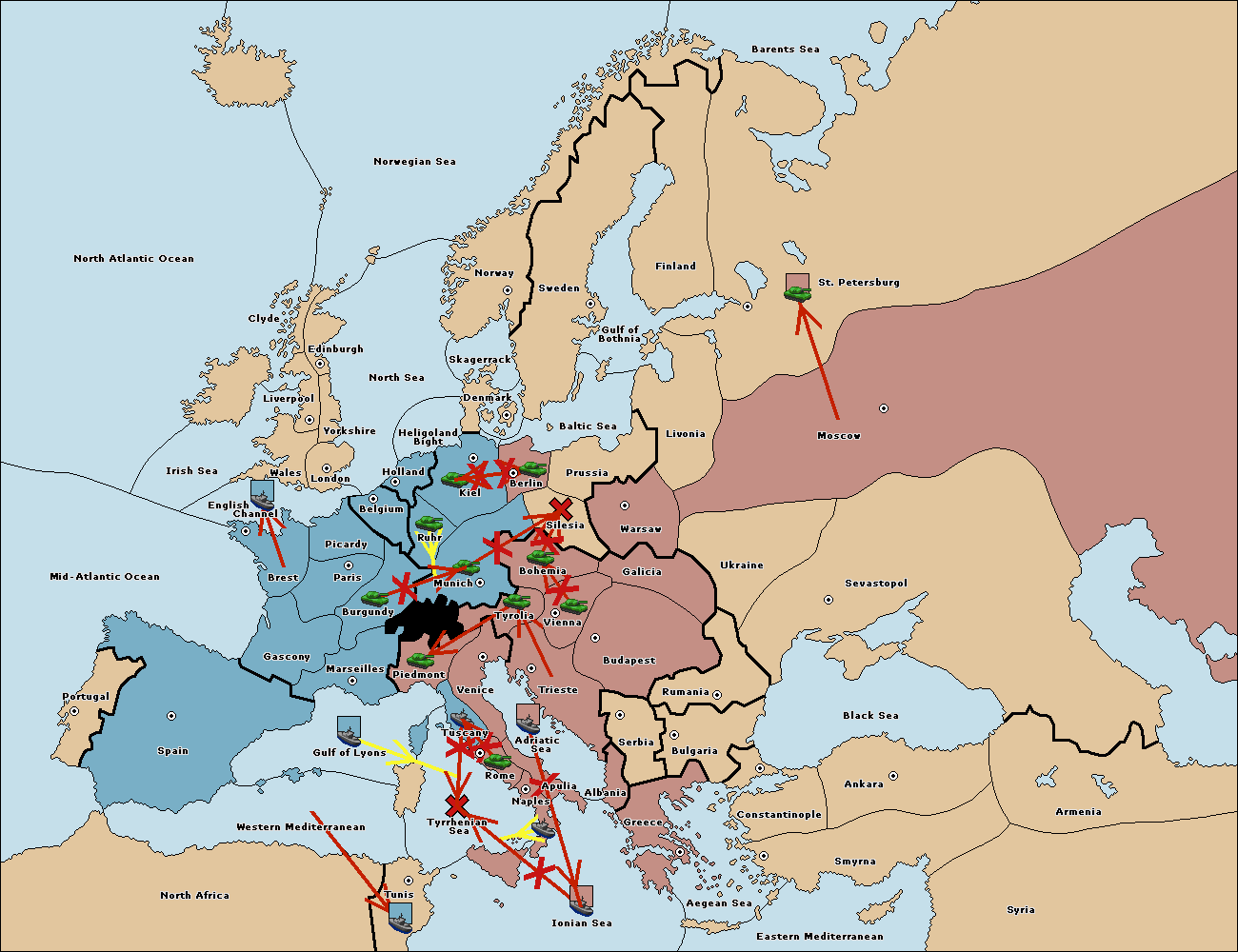 The fleet at Tyrrhenian Sea support move to Ionian Sea from Tunis.