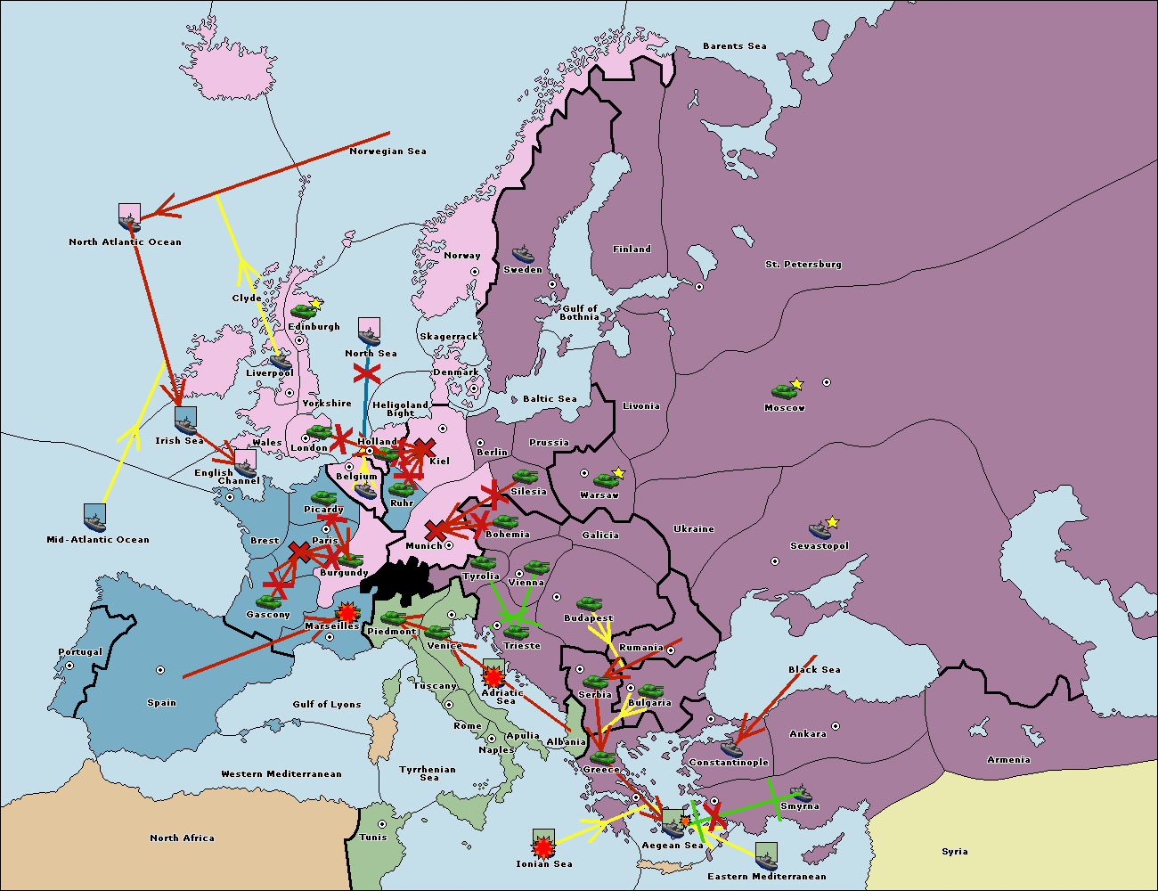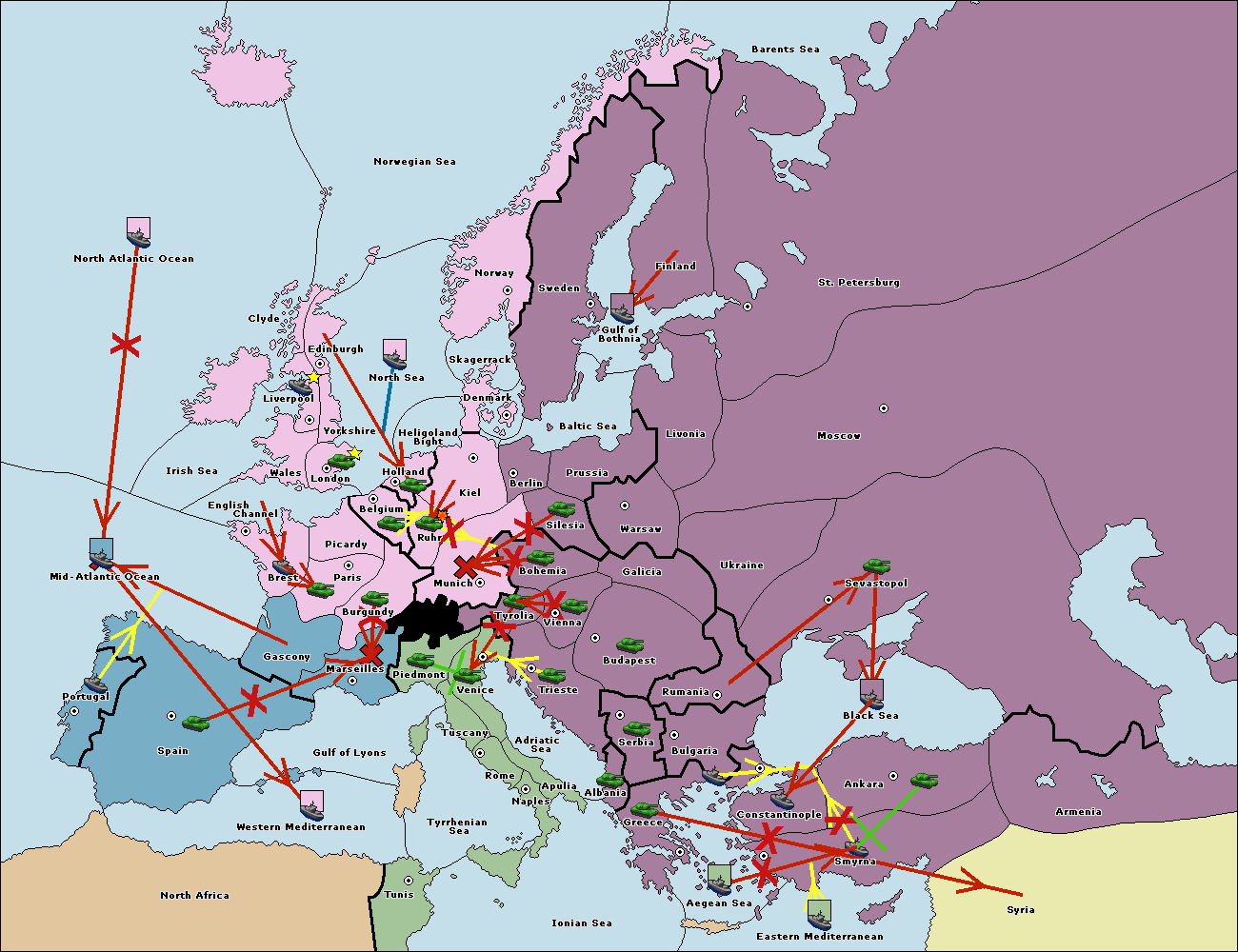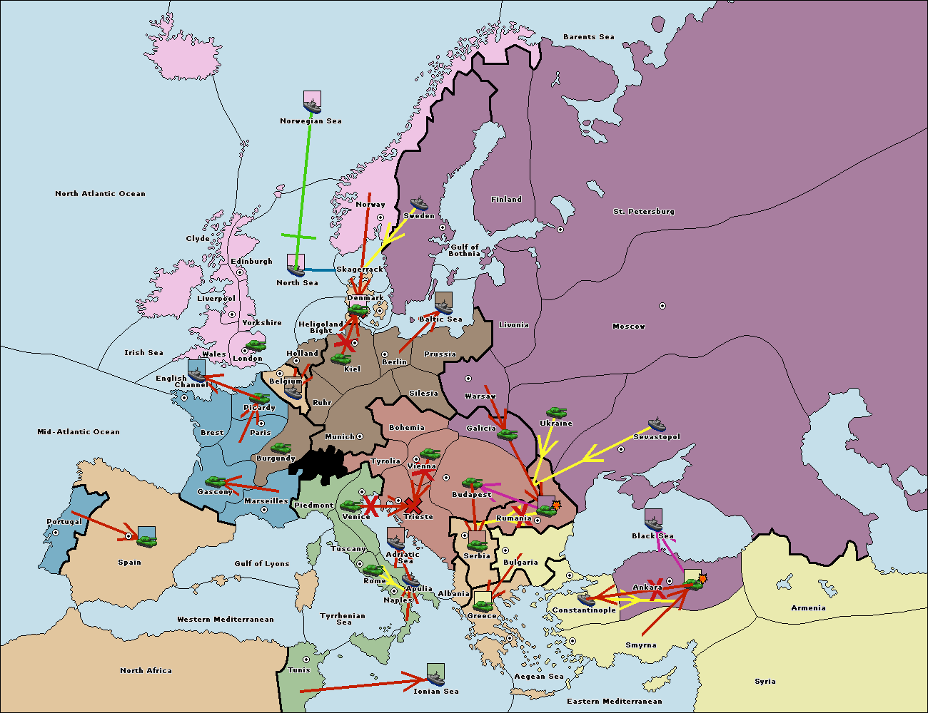The fleet at Sevastopol support move to Rumania from Galicia.
