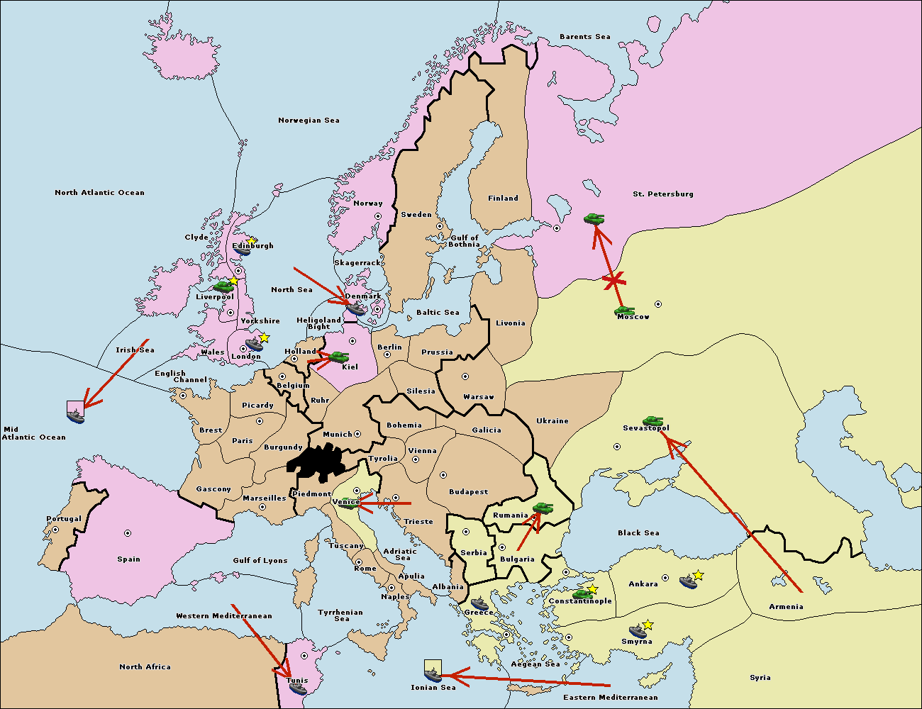 The fleet at Ionian Sea support move to Tunis from Tyrrhenian Sea.