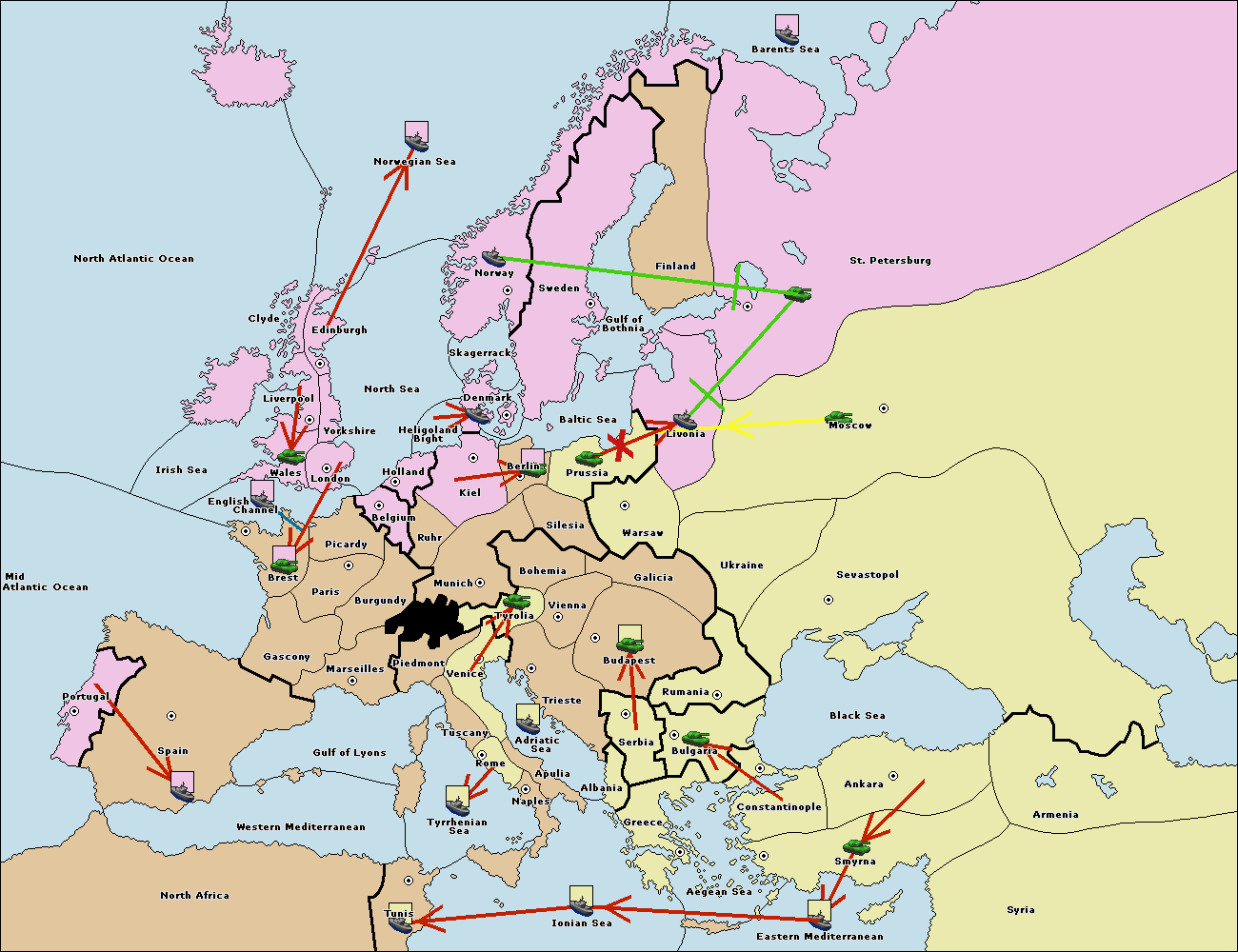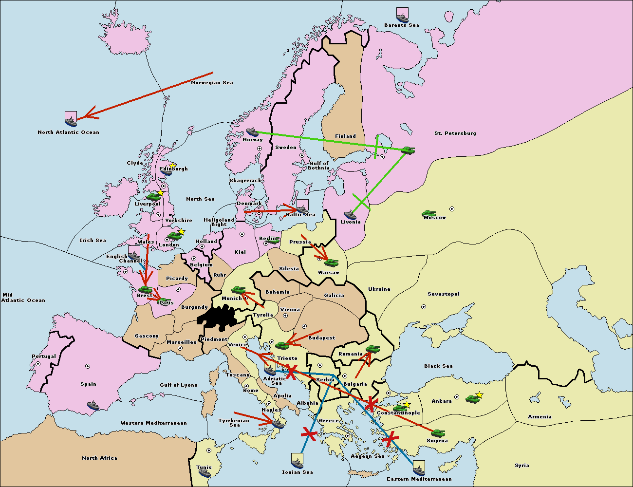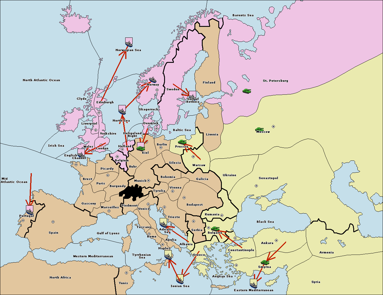 The fleet at Bulgaria (South Coast) move to Greece.