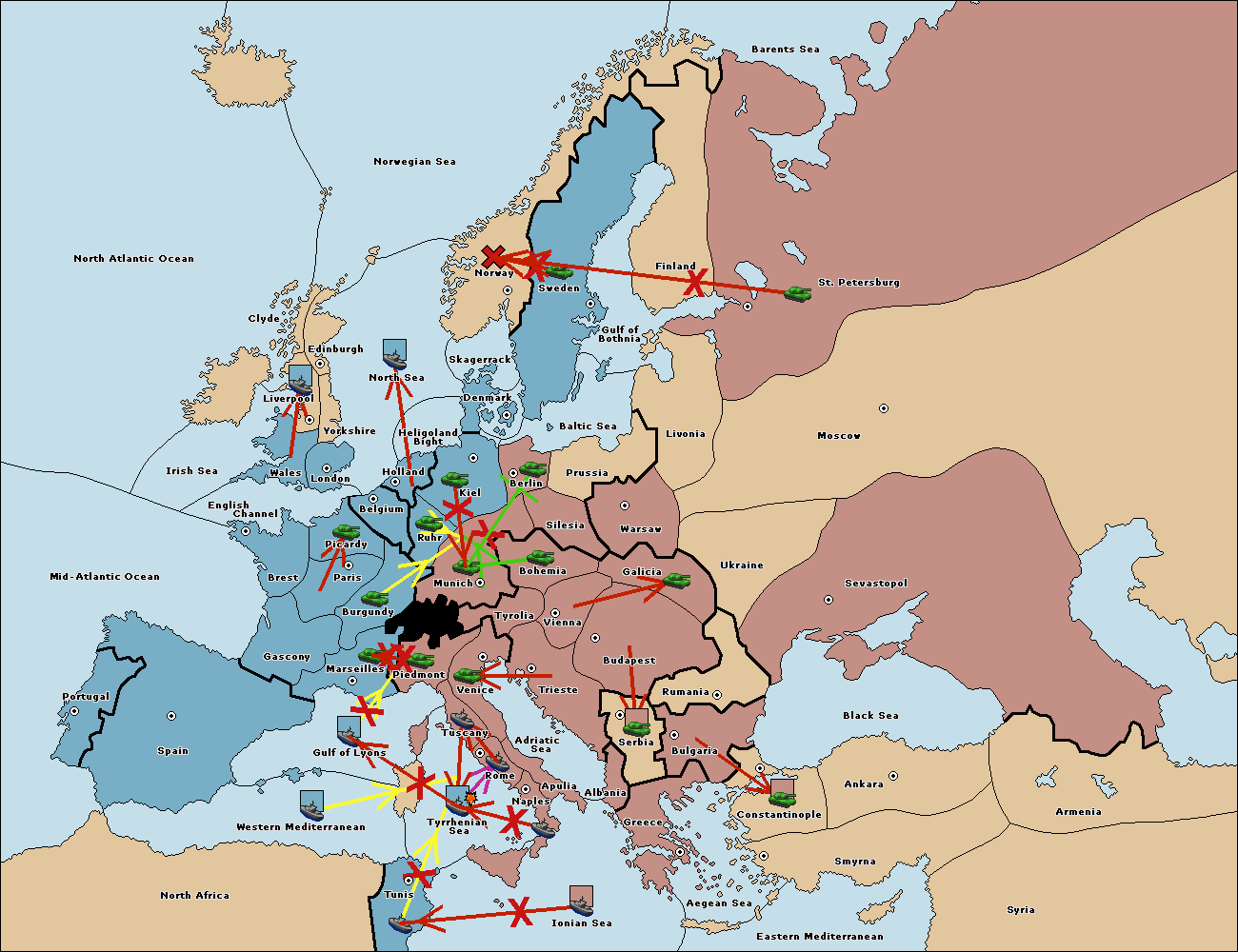 The fleet at Tuscany support move to Gulf of Lyons from Tyrrhenian Sea.