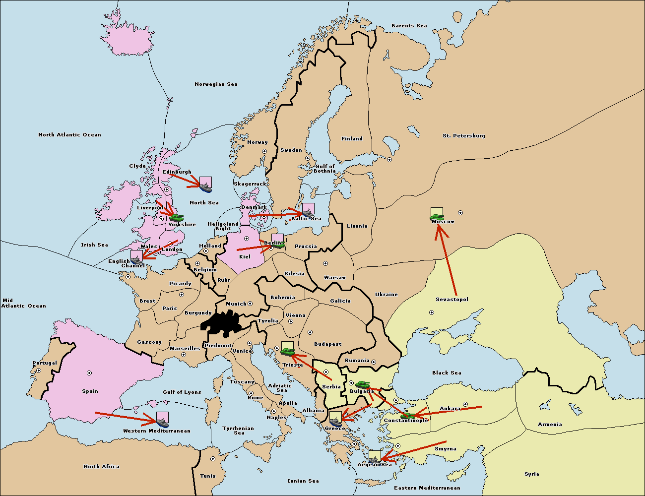 The fleet at Bulgaria (South Coast) move to Greece.