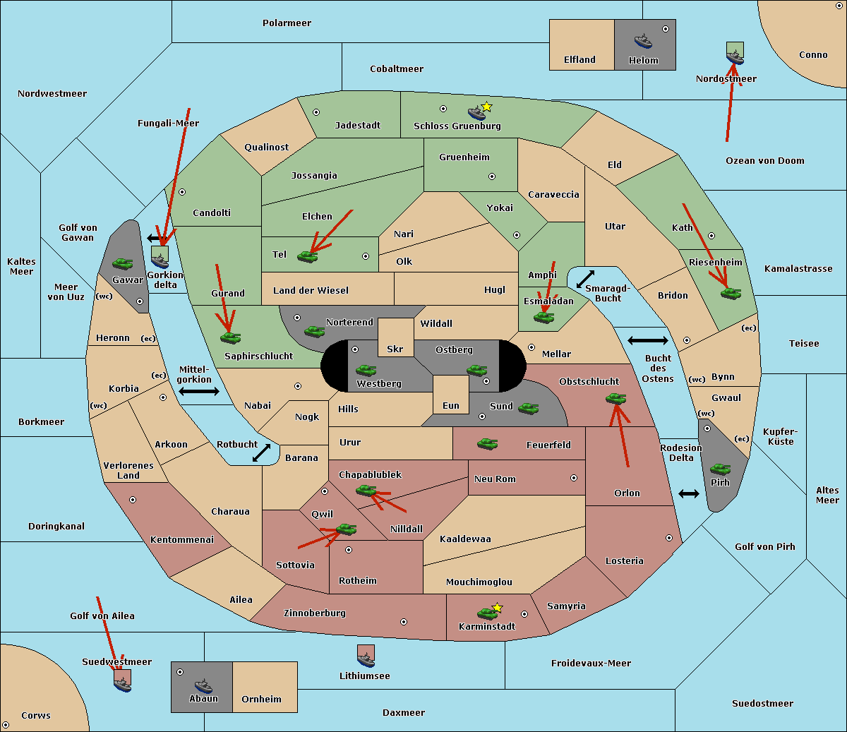 The fleet at Schloss Gruenburg move to Ozean von Doom.