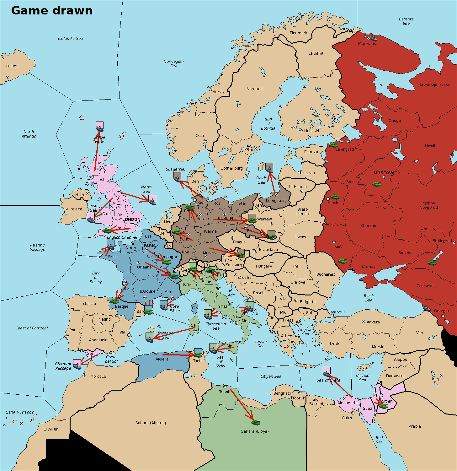 The fleet at Sardinia move to Balearic Sea.