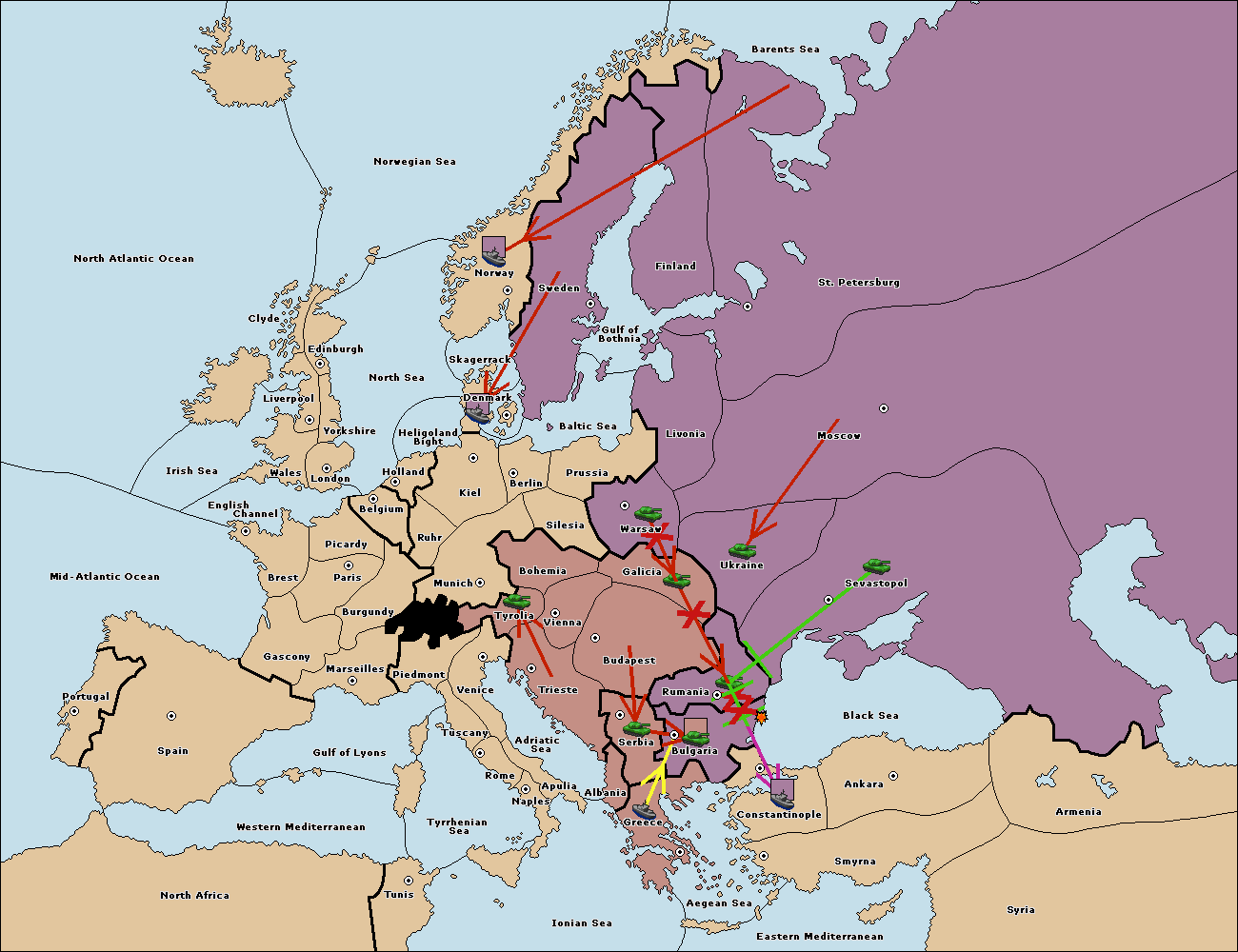 The army at Sevastopol support hold to Rumania.