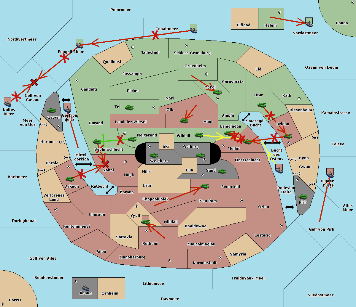 The fleet at Kaltes Meer move to Golf von Gawan.