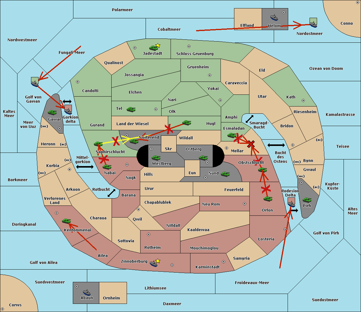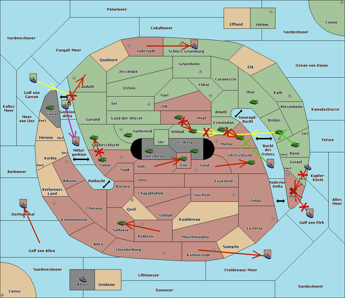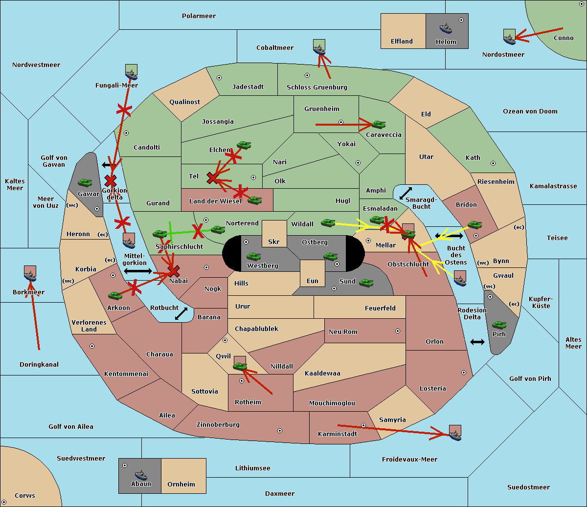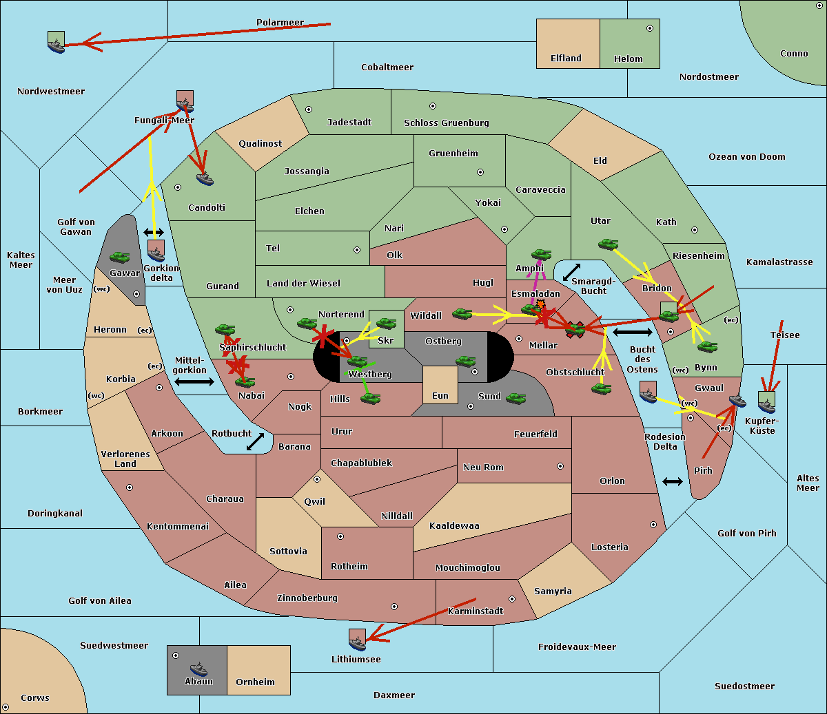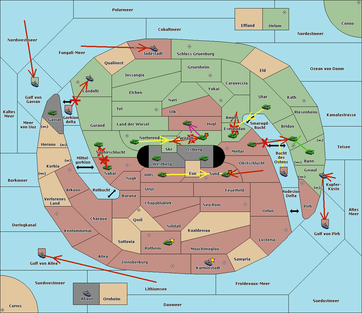 The fleet at Bucht des Ostens support move to Bynn from Zinnoberburg.
