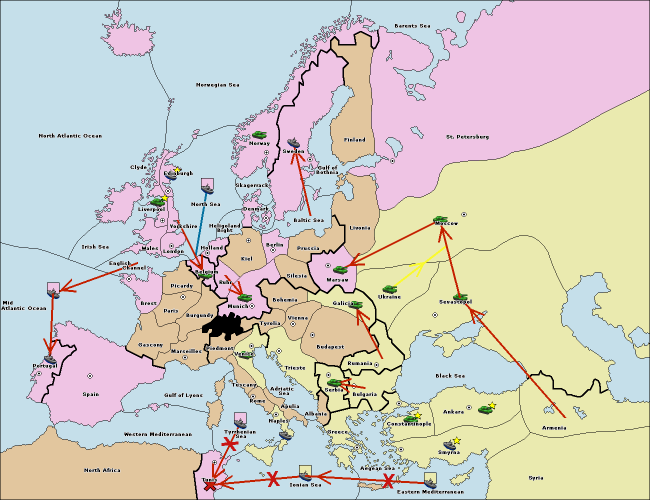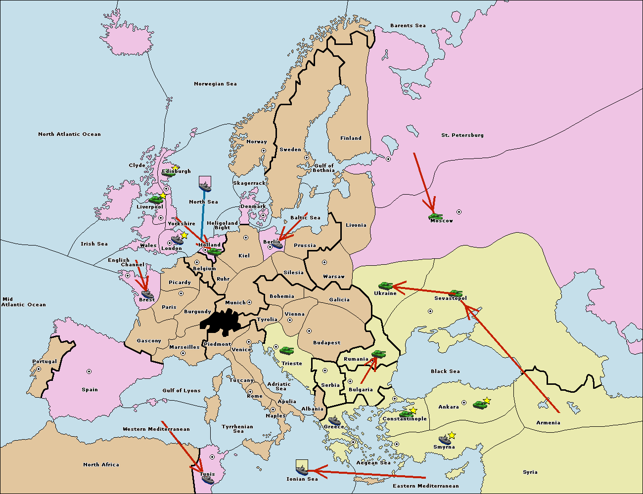 The fleet at Bulgaria (South Coast) move to Greece.