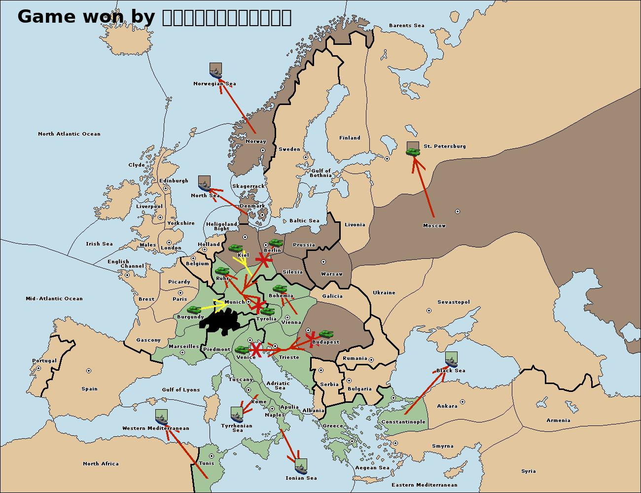 The fleet at Bulgaria (South Coast) move to Constantinople.