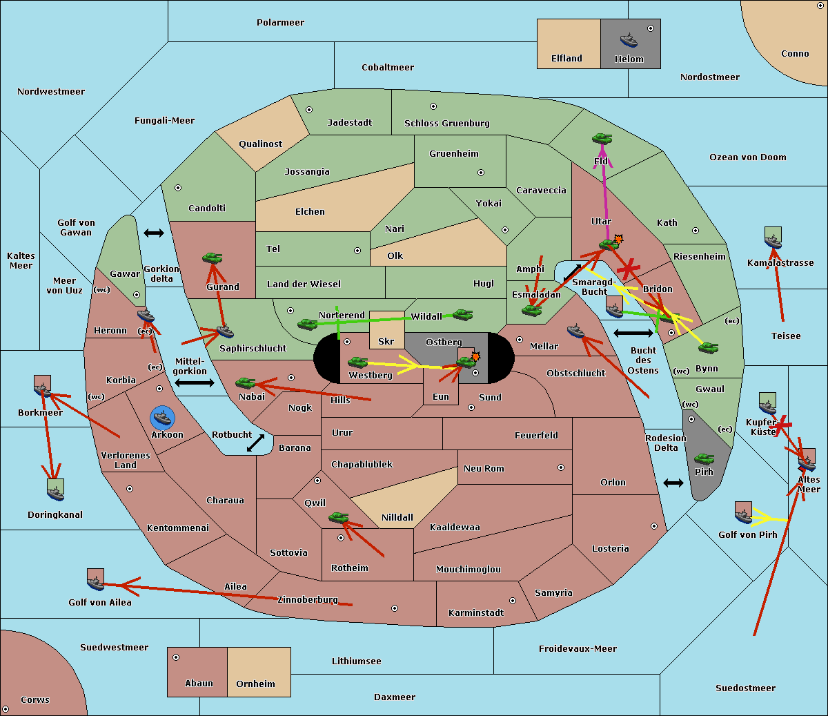 The fleet at Schloss Gruenburg move to Ozean von Doom.