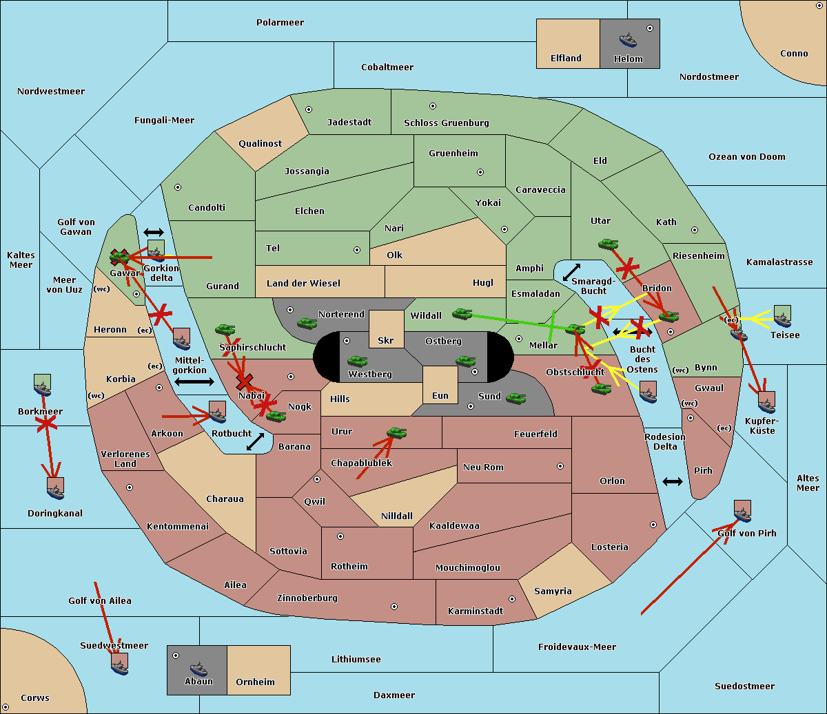 The fleet at Schloss Gruenburg move to Ozean von Doom.