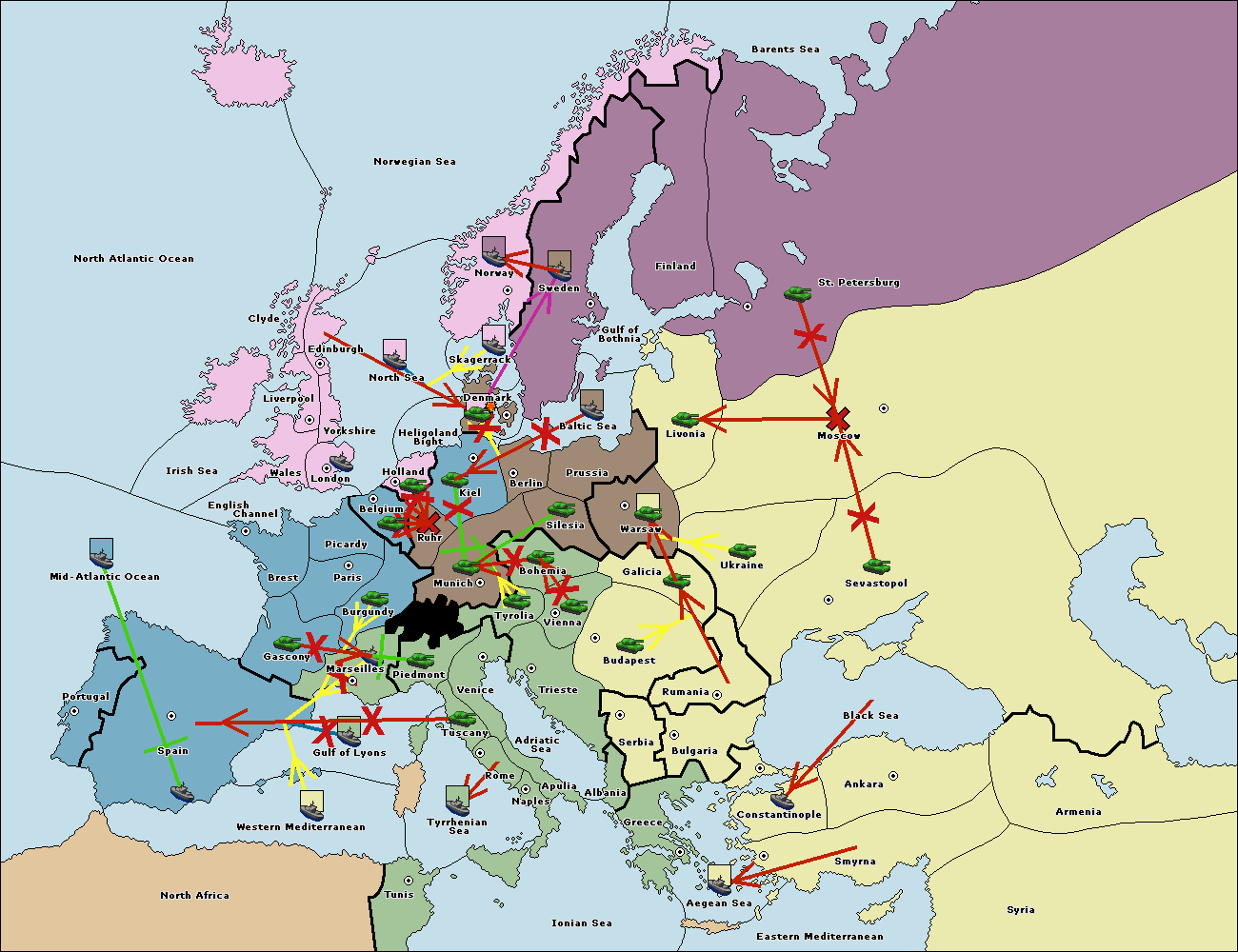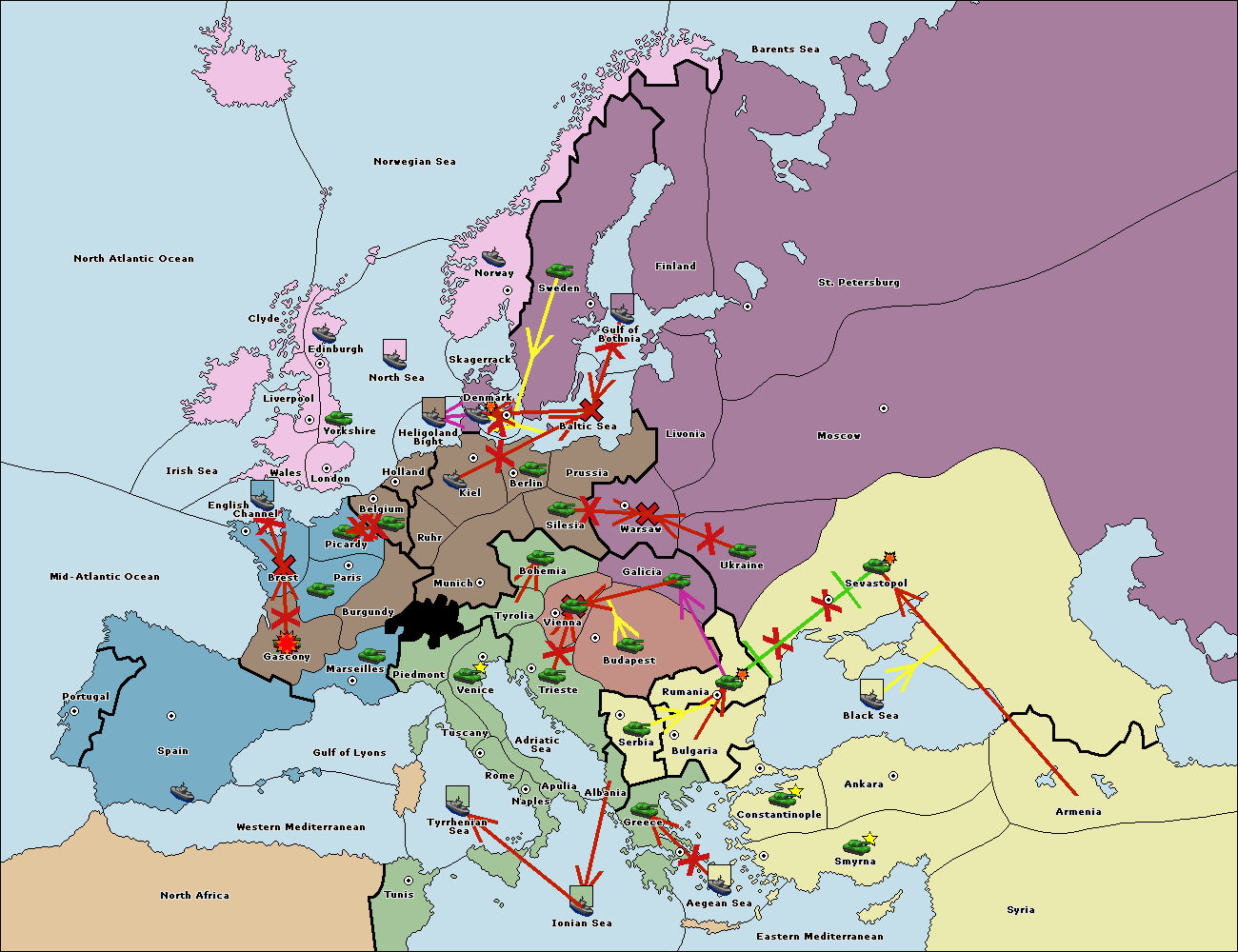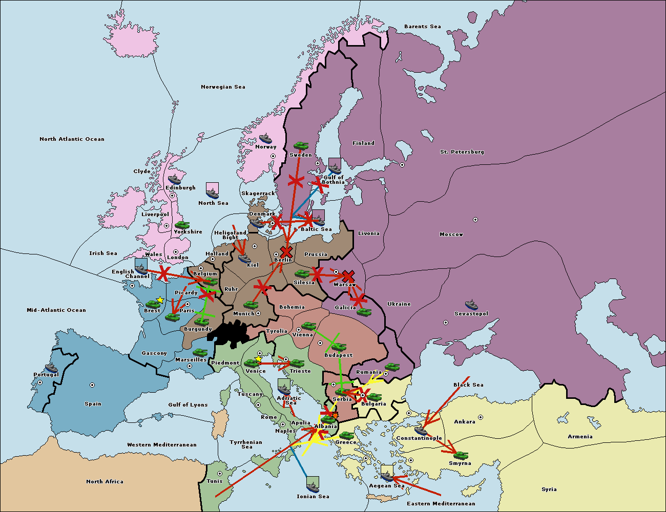 The fleet at Aegean Sea support move to Bulgaria from Constantinople.