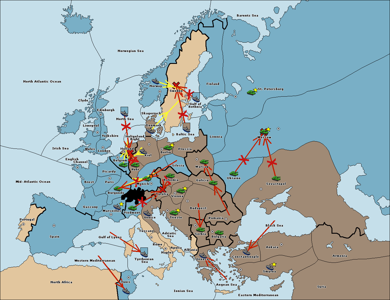 The fleet at Berlin move to Baltic Sea.