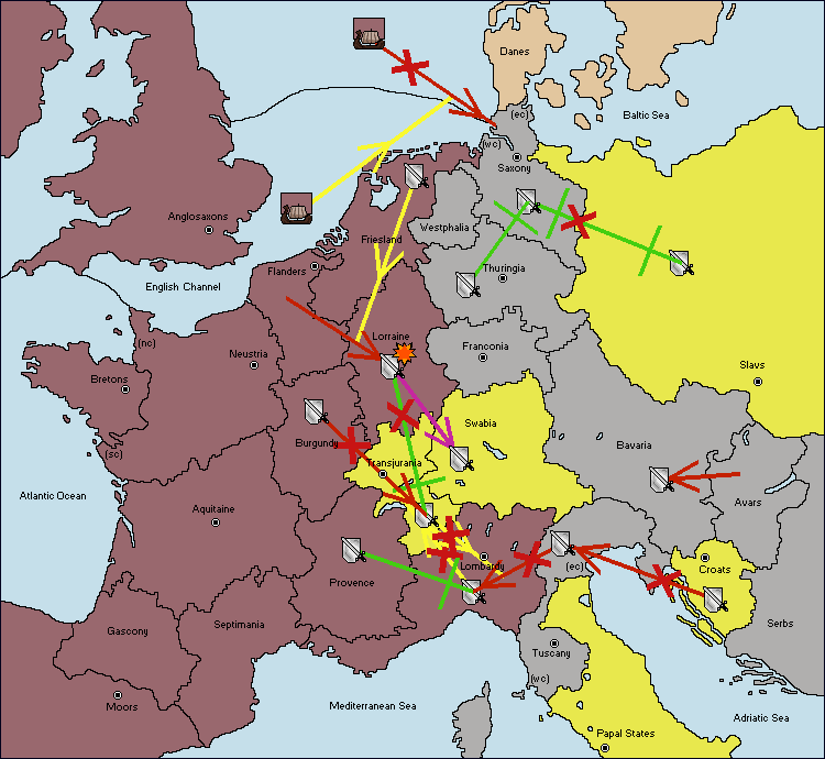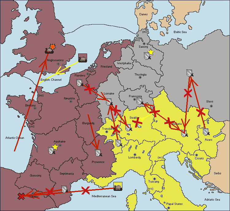 The fleet at Saxony (West Coast) retreat to Baltic Sea.