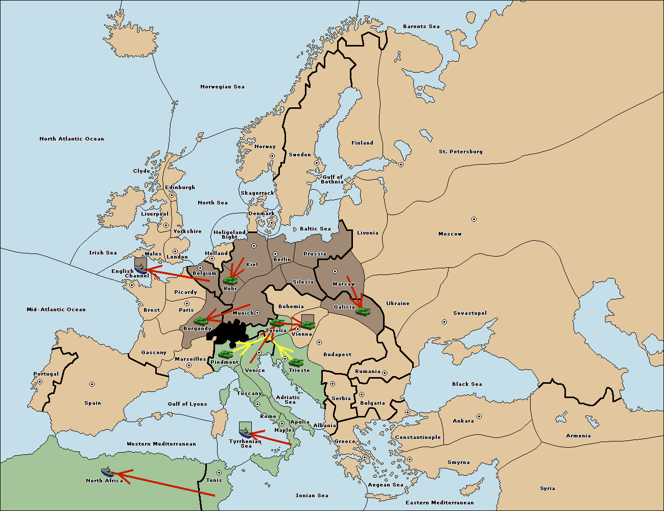 The army at Tyrolia move to Munich.