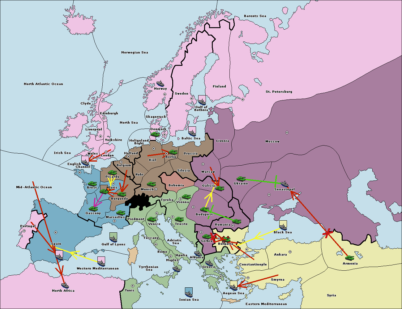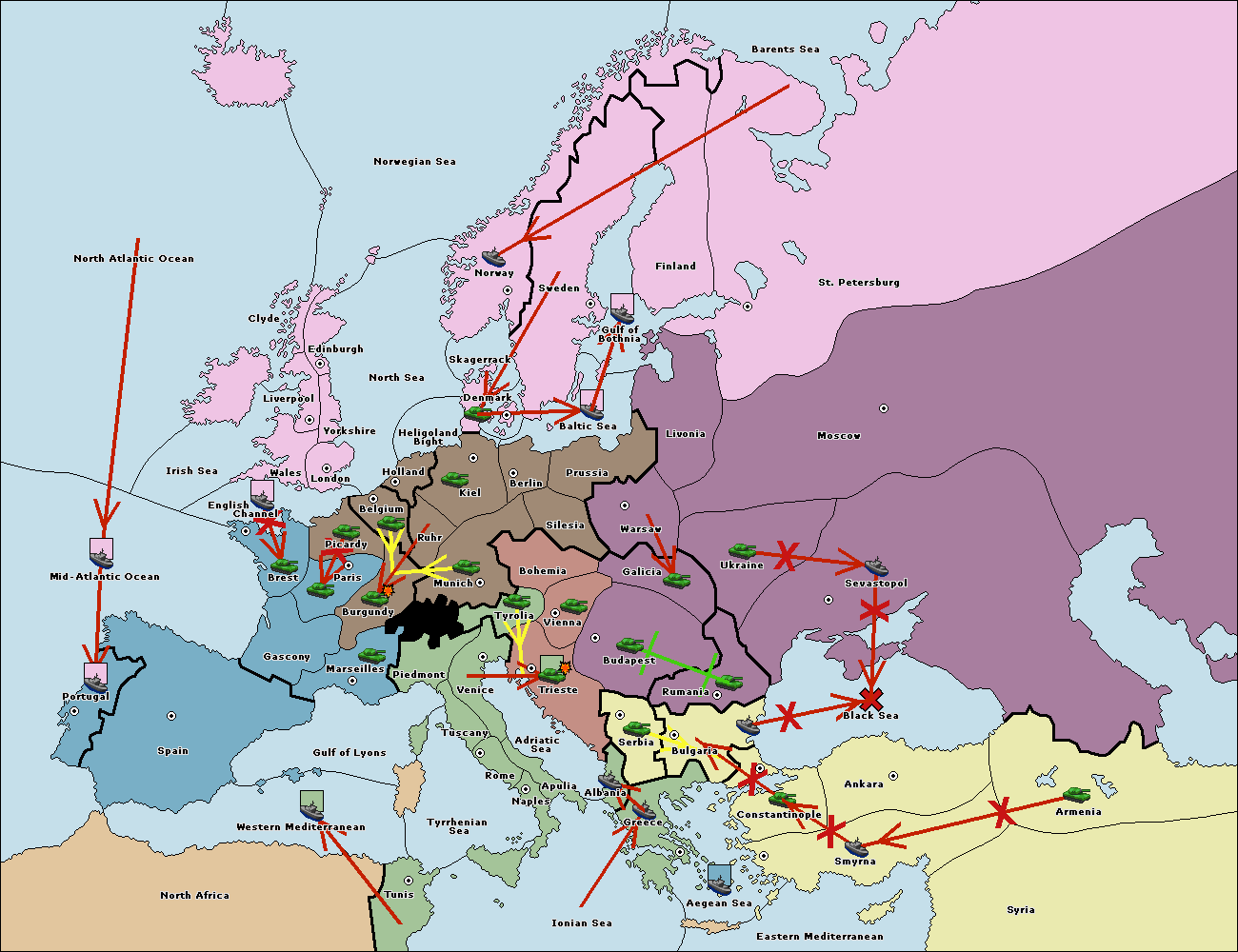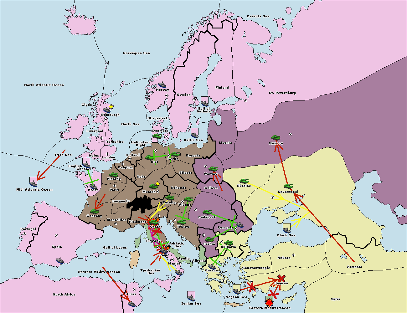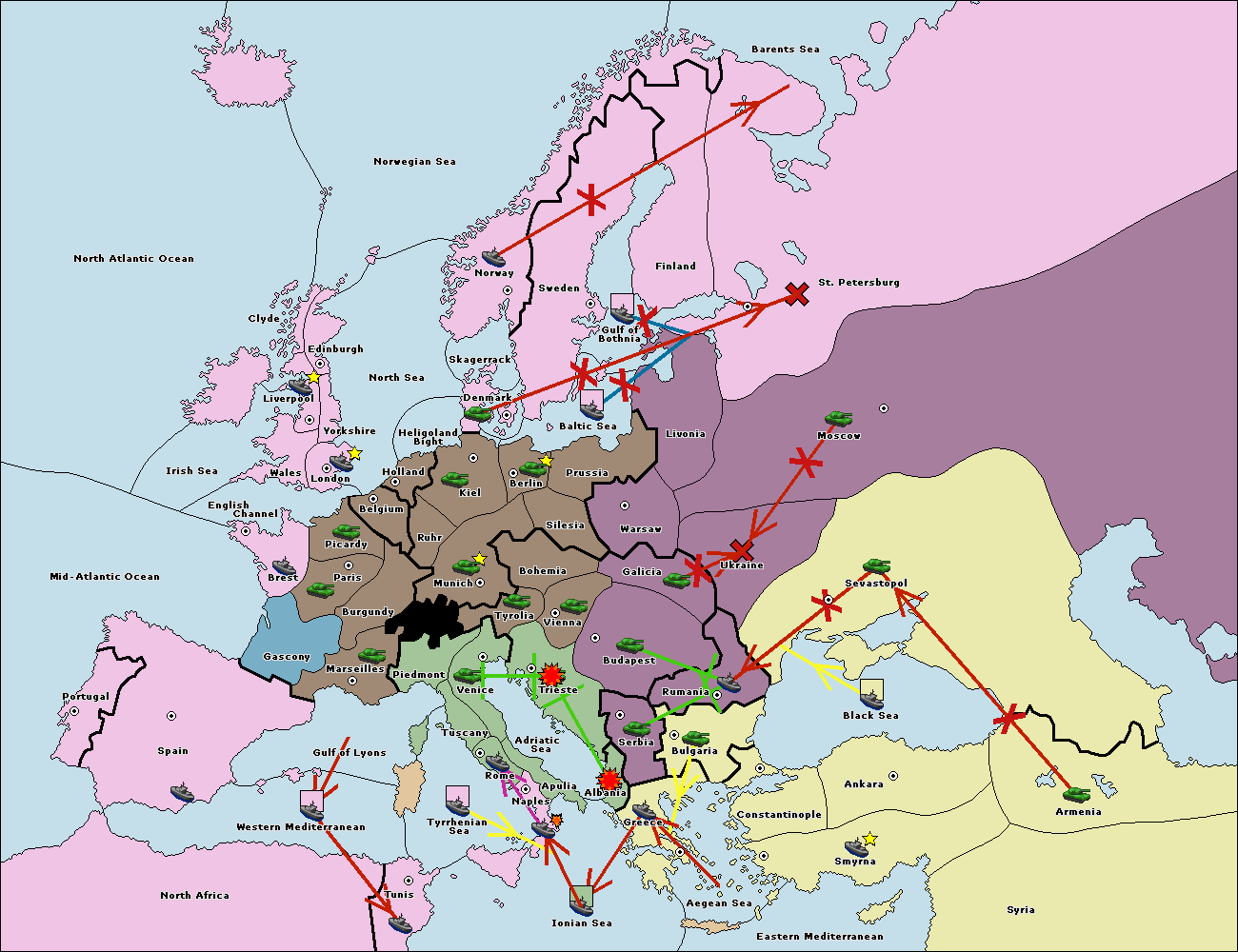 The fleet at Bulgaria (North Coast) support hold to Constantinople.